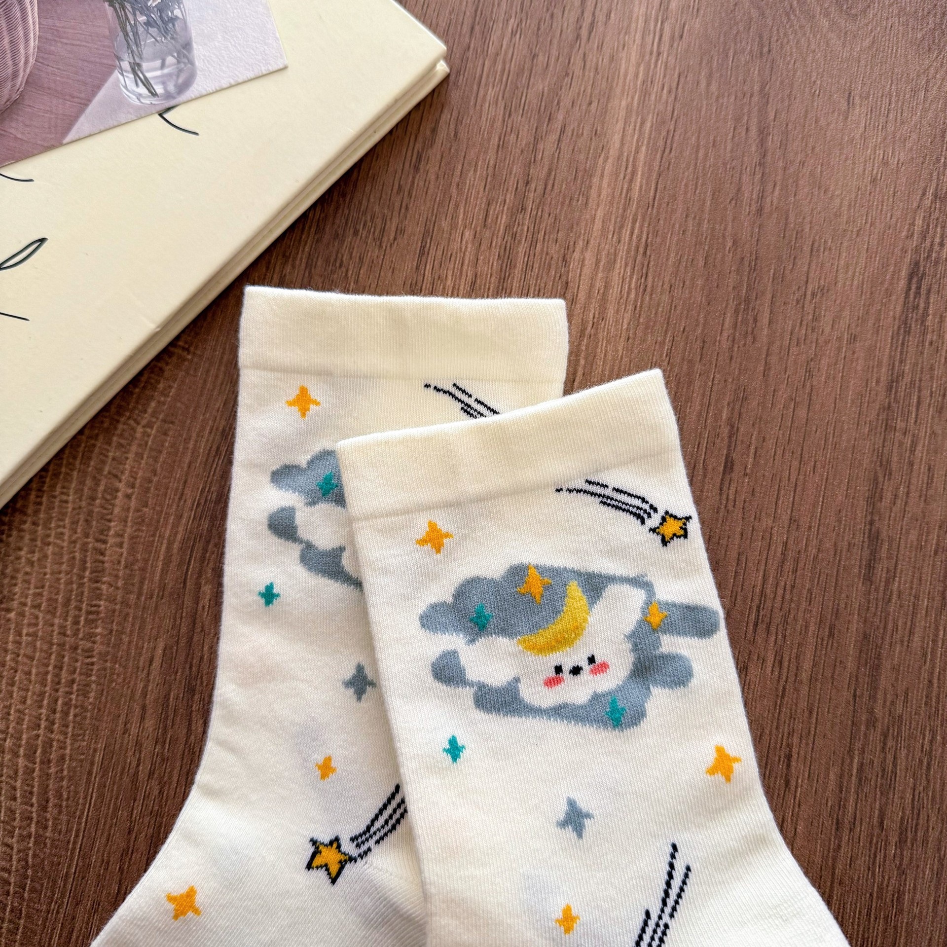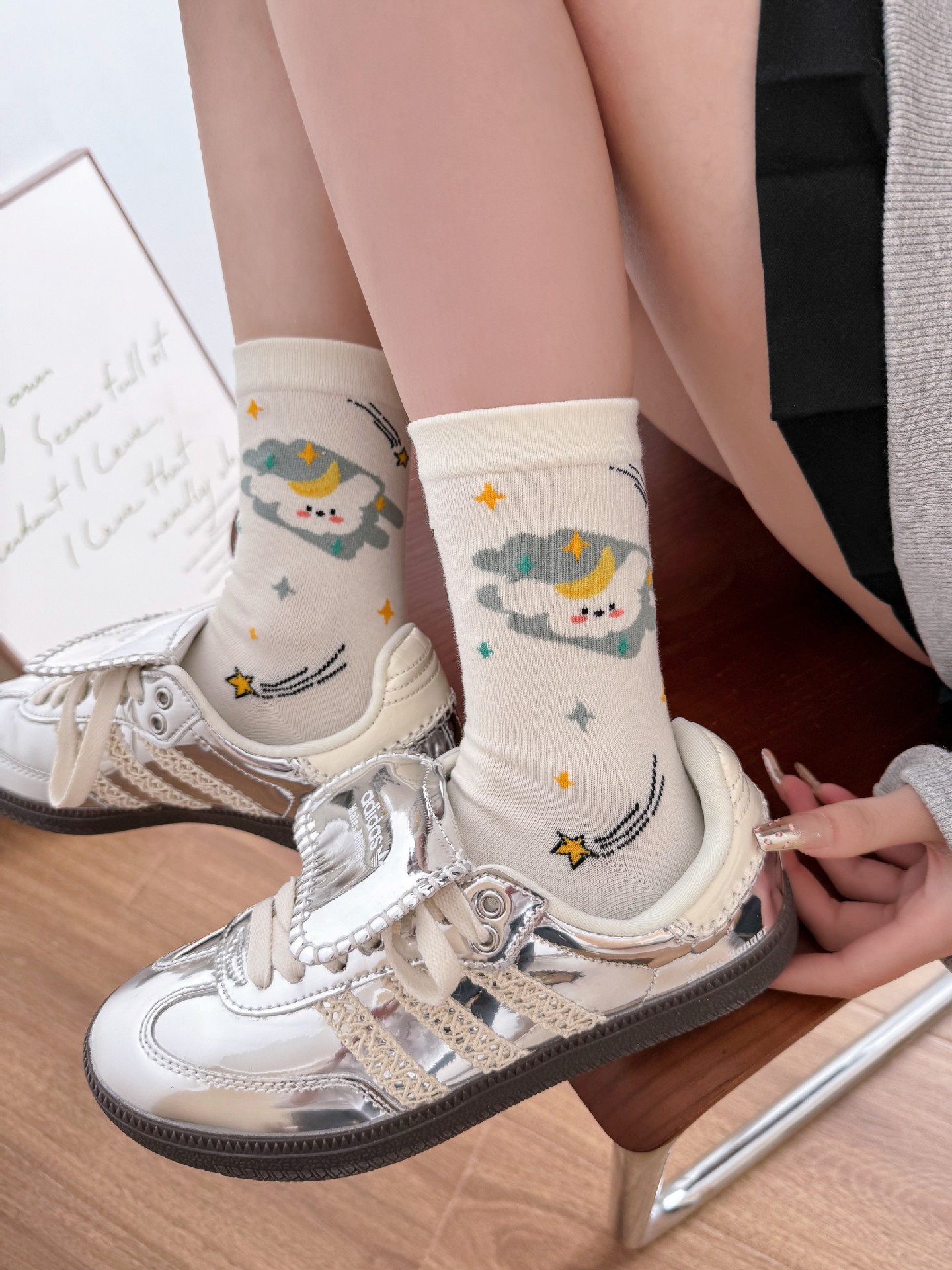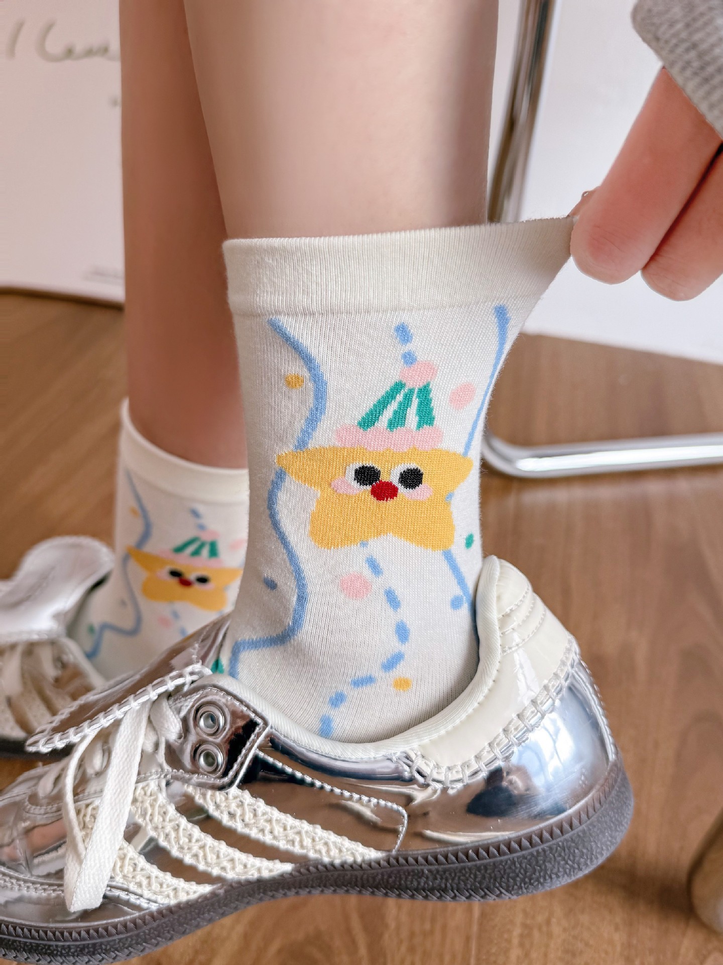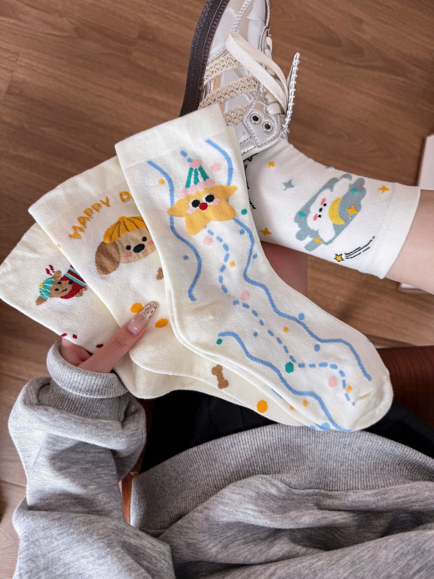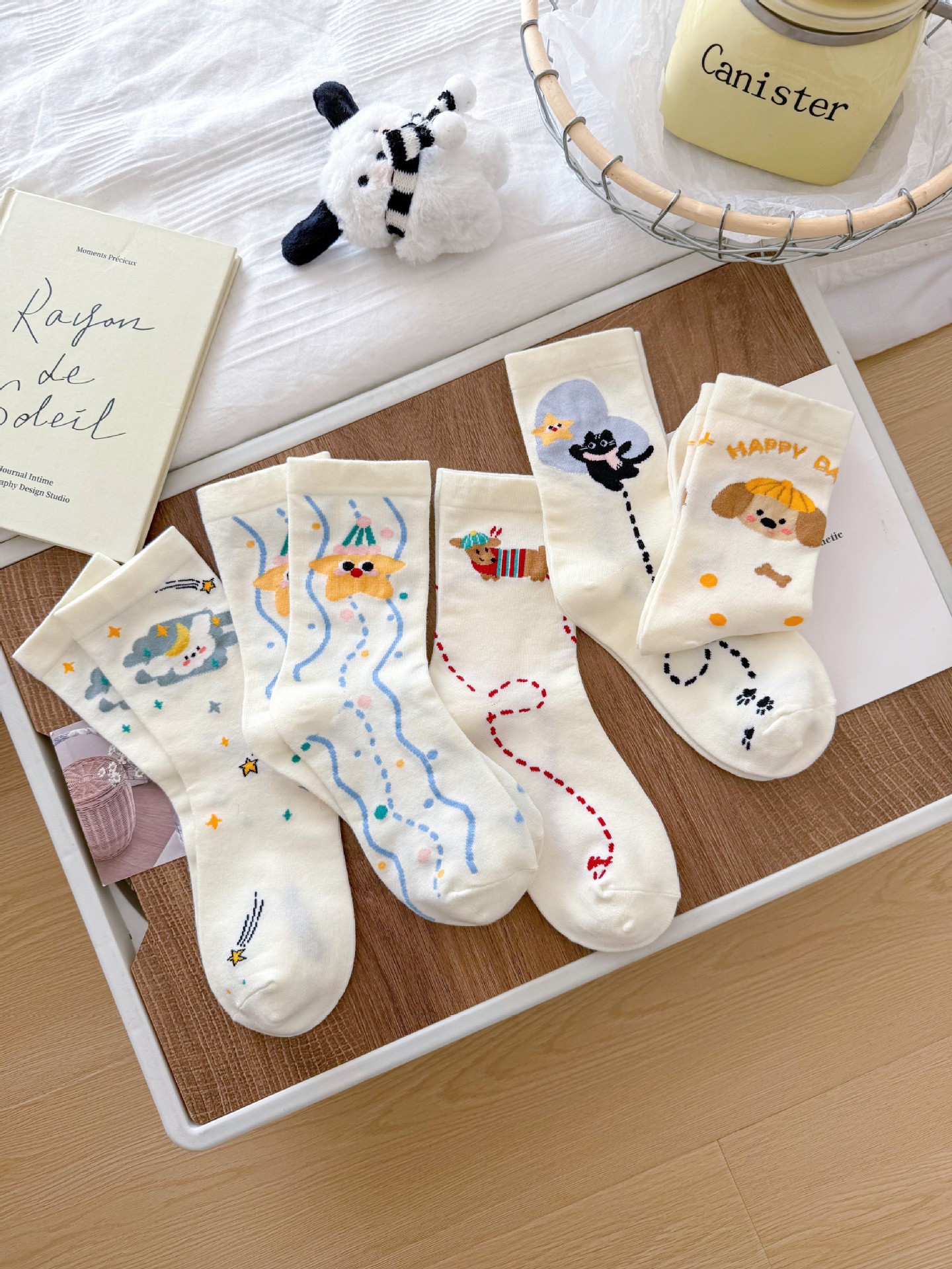 귀여운 강아지 양말 여성용 봄 가을 대학 스타일 일본풍 일러스트 만화 별 중목 양말 한국 스타일 학생용 면 양말