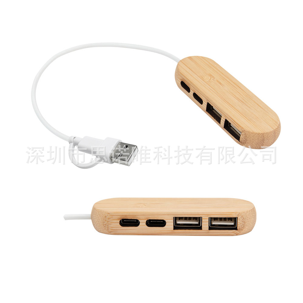 다기능 환경 보호 대나무 USB 허브 창조적 인 메모 상자 생분해 성 USB 스플리터 4 포트 익스텐더