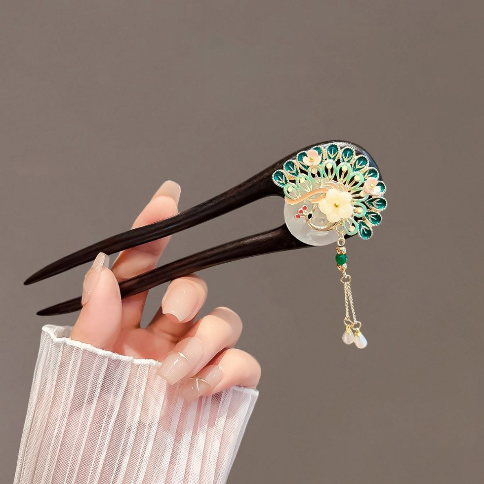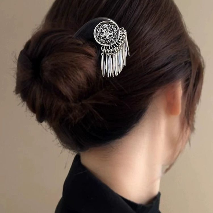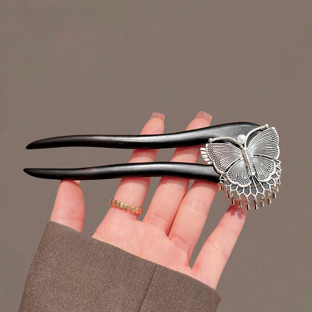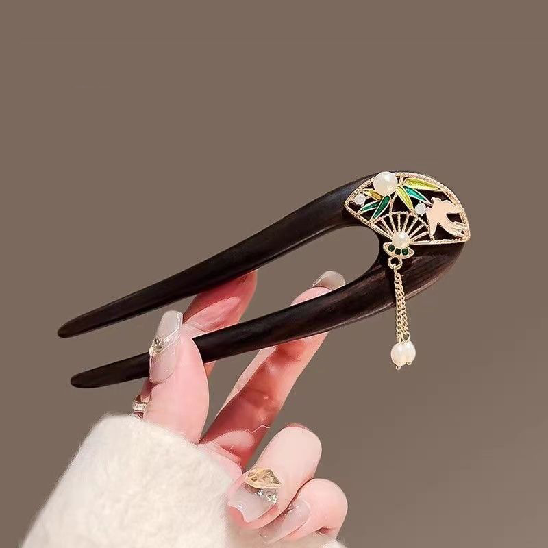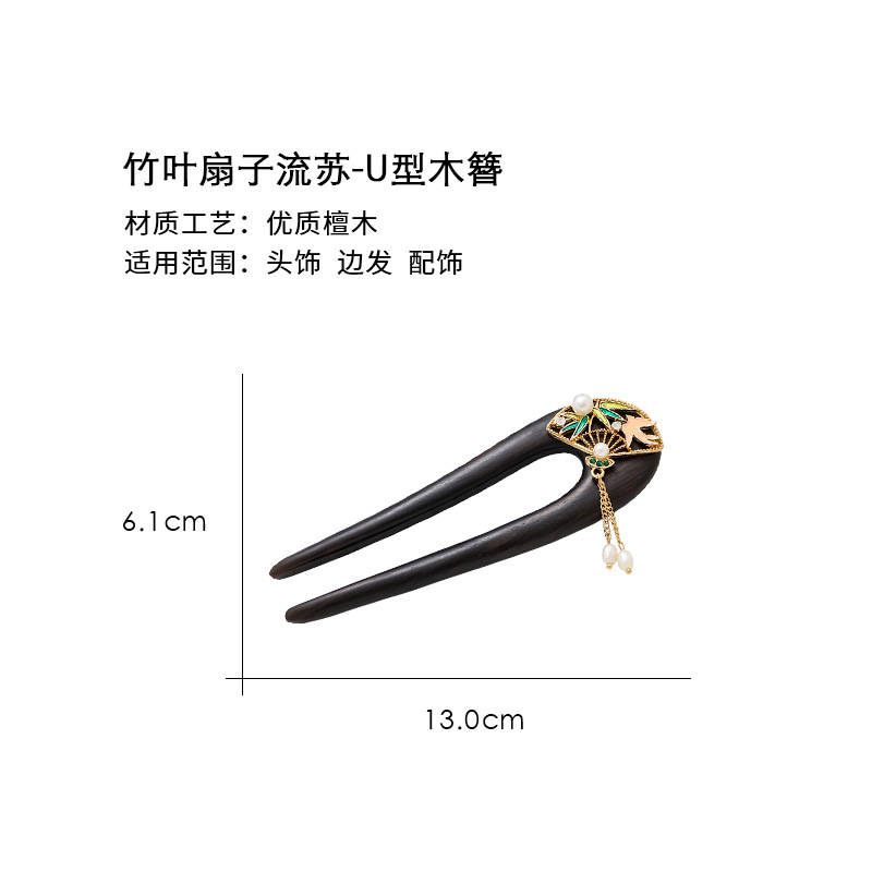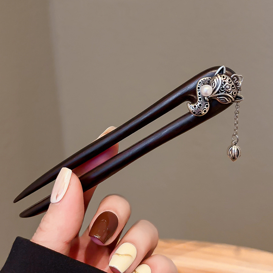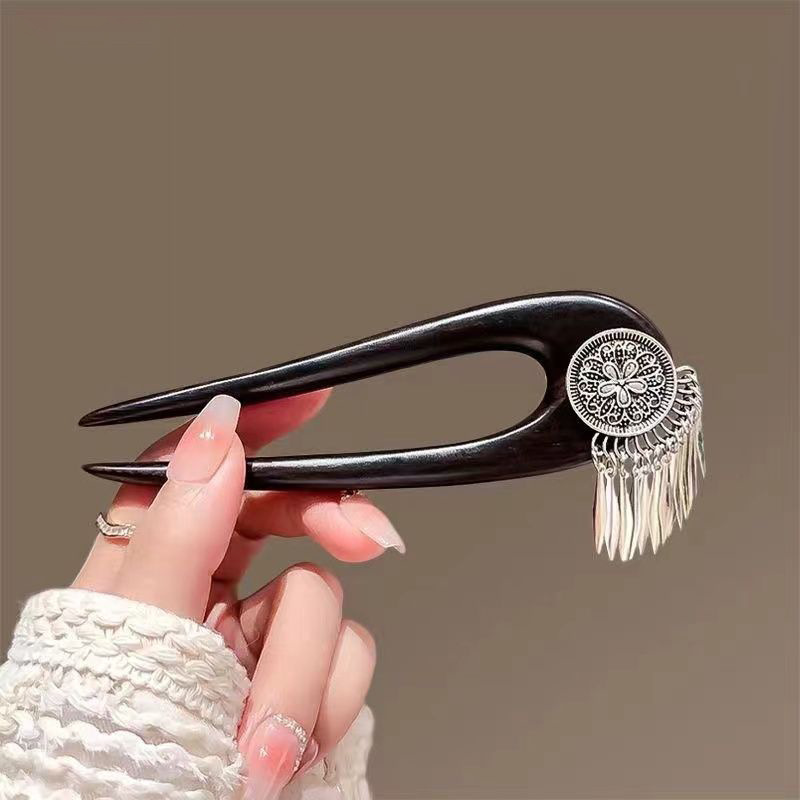 새로운 U 자형 더블 헤어핀 흑단 헤어핀 골동품 매일 여성 플레이트 헤어 걸쇠 간단한 중국 스타일 헤어핀 나무 머리핀
