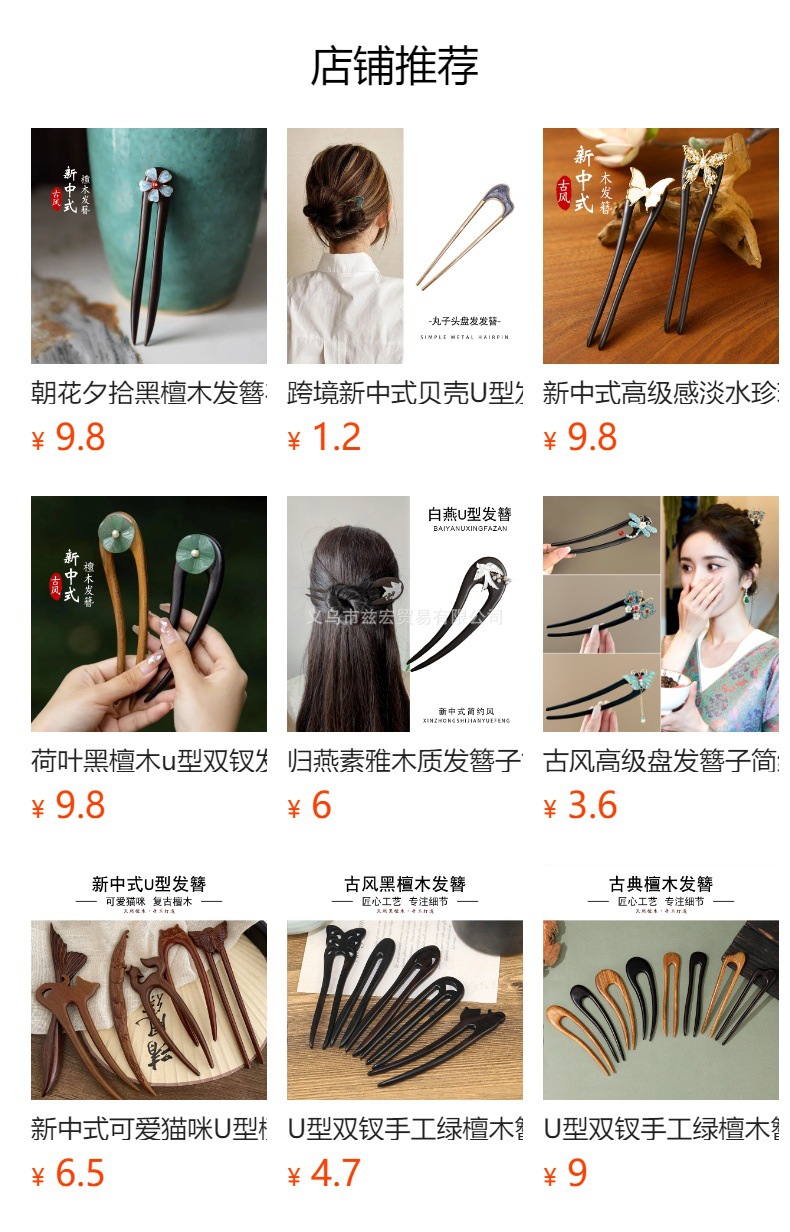 새로운 U 자형 더블 헤어핀 흑단 헤어핀 골동품 매일 여성 플레이트 헤어 걸쇠 간단한 중국 스타일 헤어핀 나무 머리핀스토어 가기