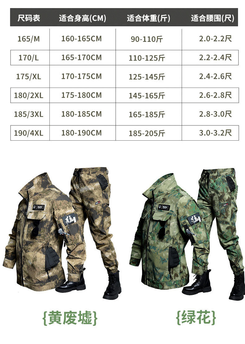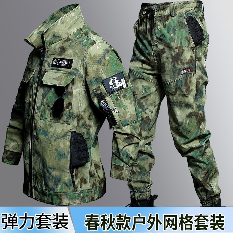 A8C [3295 컬렉션] 내마모성 작업복 세트 남성용 위장복 눈물 방지 크로트 바지 야외 군대스토어 가기