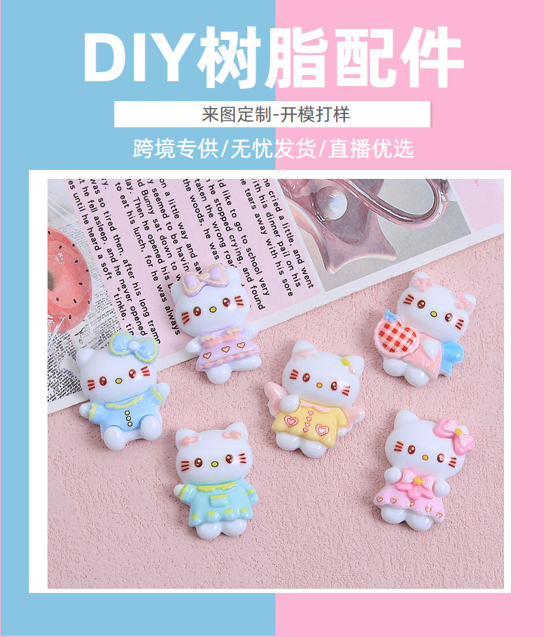 귀여운 활 새끼 고양이 만화 수제 DIY 수지 액세서리 작은 액세서리 보석 구멍 신발 소재 가방 도매