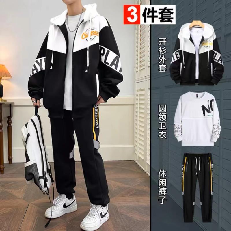 중학생 청소년 레저 스포츠 땀 세트 봄과 가을 얇은 유행 남성 3 피스 세트 잘 착용스토어 가기