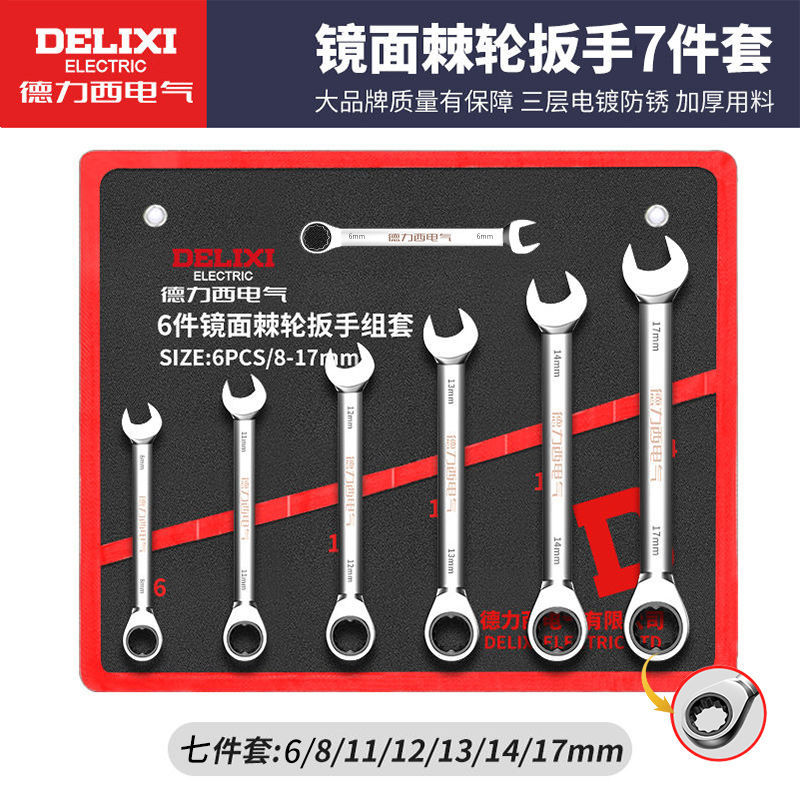 • Delixi 전기 래칫 콤비네이션 렌치 7종 세트[6-17mm]