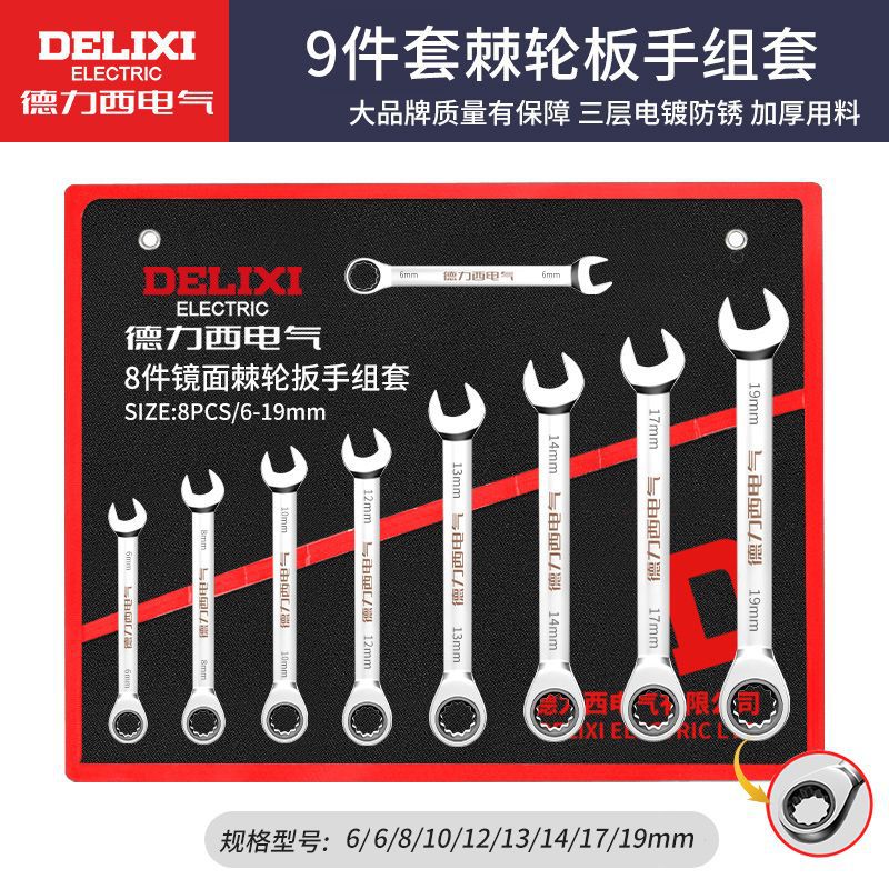 • Delixi 전기 래칫 콤비네이션 렌치 9개 세트[6-19mm]