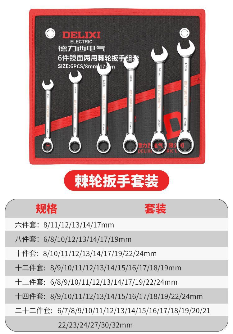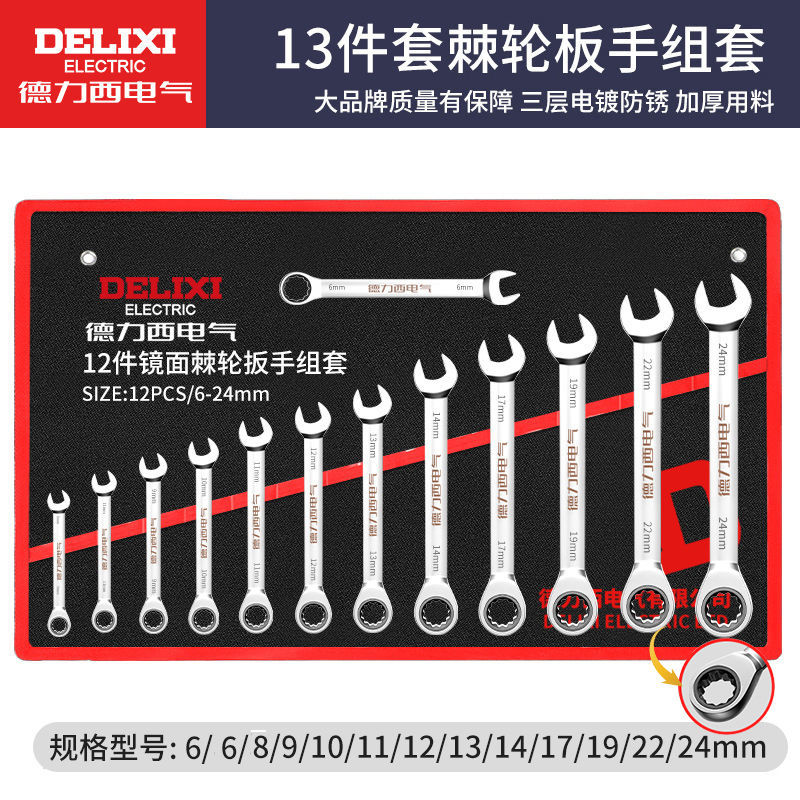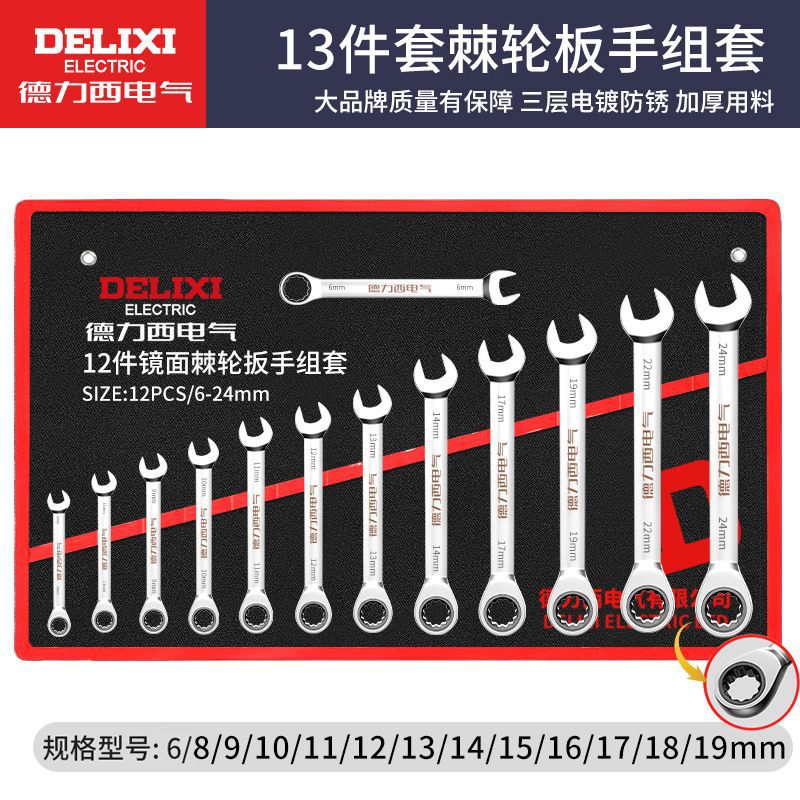 • Delixi 전기 래칫 콤비네이션 렌치 13개 세트[6-24mm]