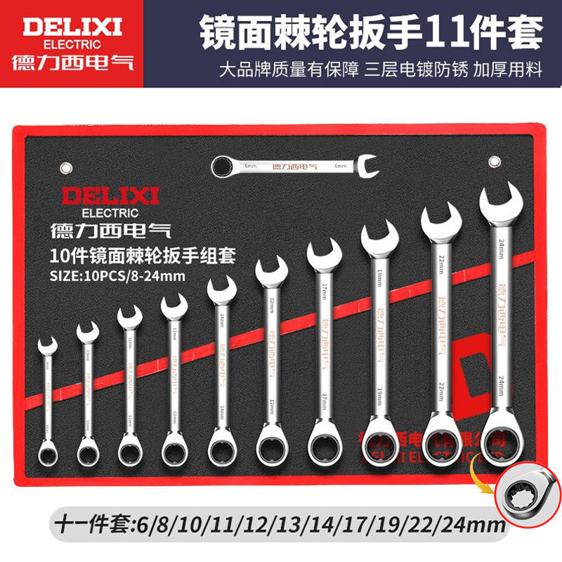 • Delixi 전기 래칫 콤비네이션 렌치 11개 세트[6-24mm]