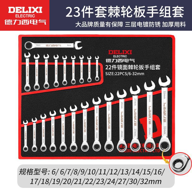 • Delixi 전기 래칫 콤비네이션 렌치 23개 세트[6-32mm]