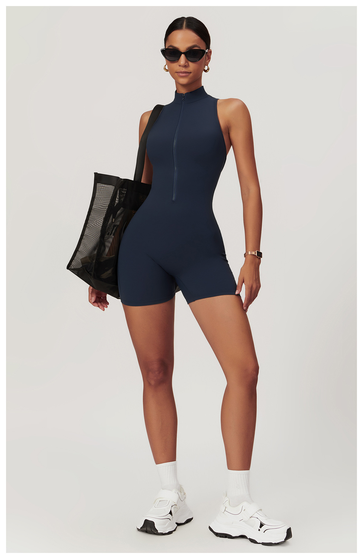 공장 직영 고강도 운동용 등라인 보정 요가 점프수트 지퍼형 누드톤 타이트 피트니스 점프수트 여성용 가슴 패드 포함스토어 가기