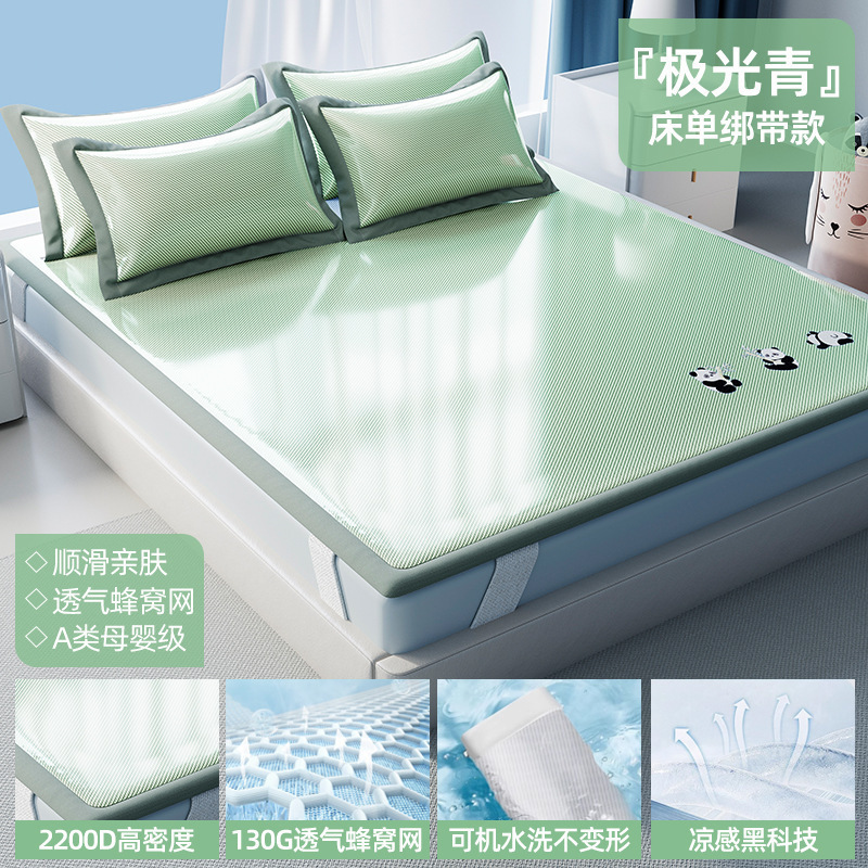 여름 매트 2025 새로운 매트 아이스 실크 매트 클래스 모성 및 유아 등급 밀짚 매트 매트리스 침대 시트 3 피스 세트