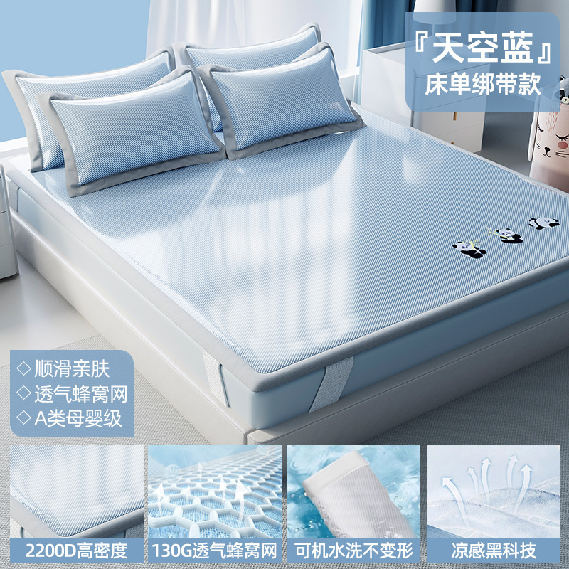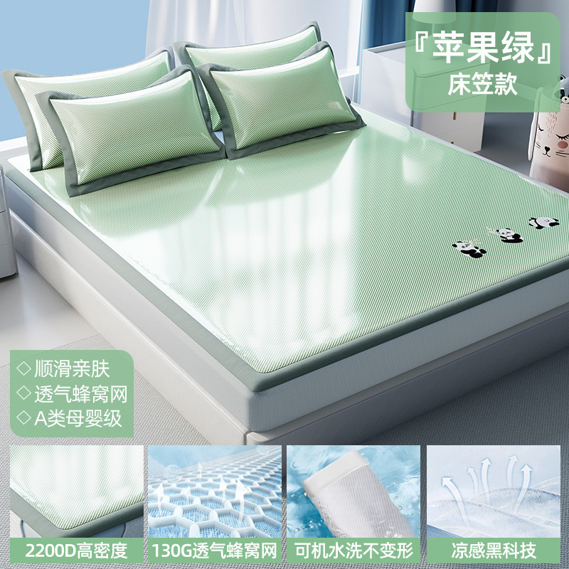 여름 매트 2025 새로운 매트 아이스 실크 매트 클래스 모성 및 유아 등급 밀짚 매트 매트리스 침대 시트 3 피스 세트스토어 가기