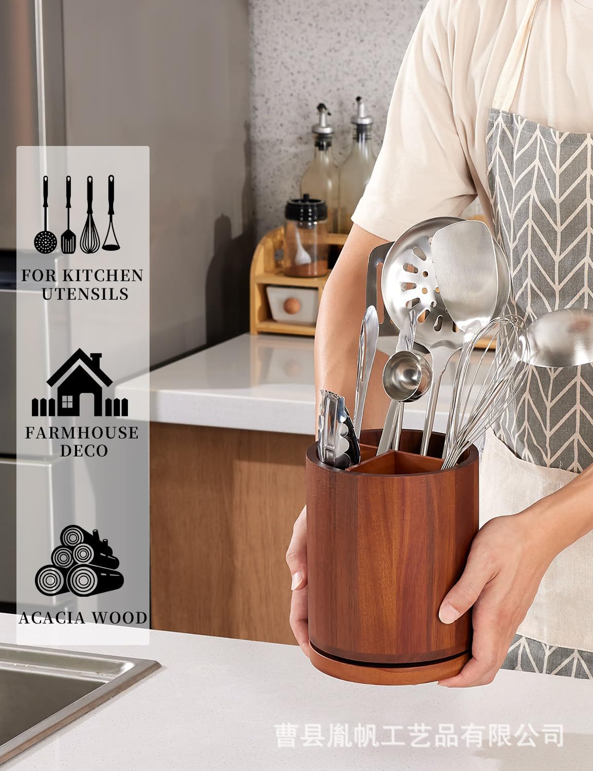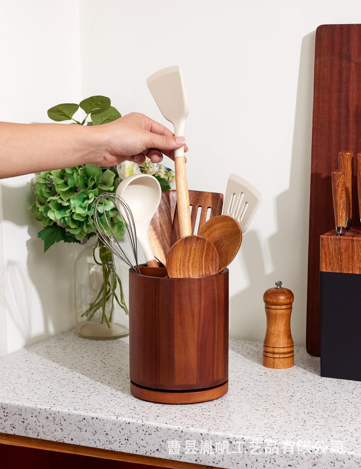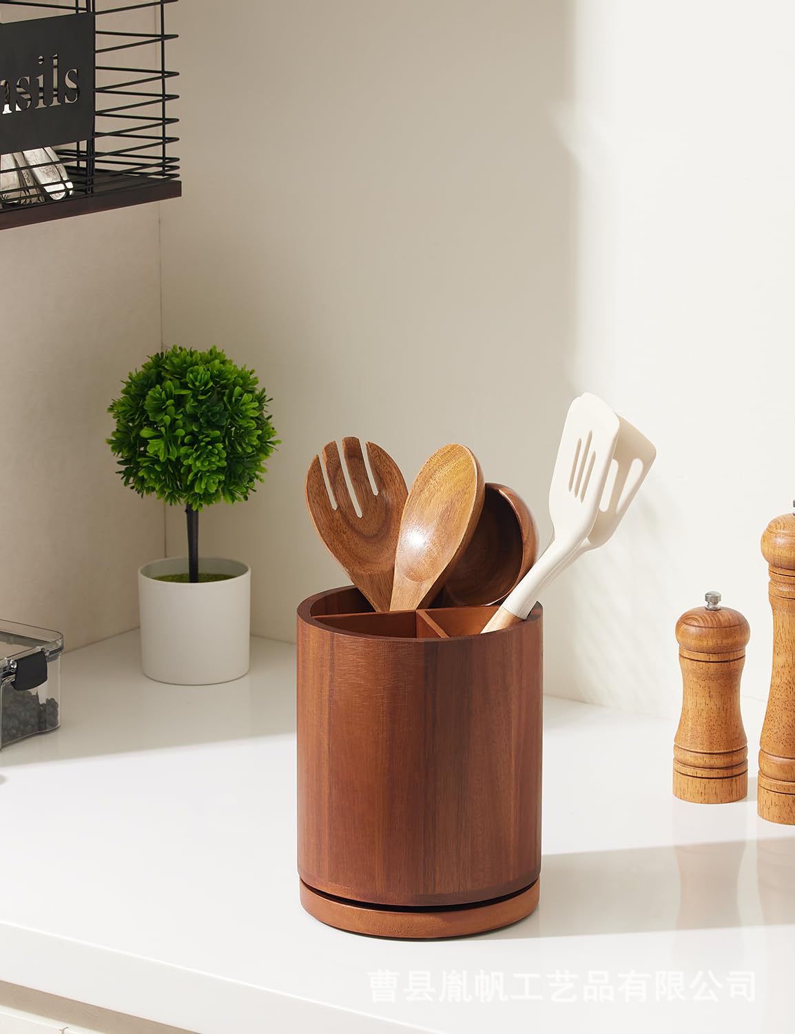 나무 식기 저장 상자 회전 가능한 숟가락 칼 상자 주방 숟가락 요리 도구 저장 튜브스토어 가기