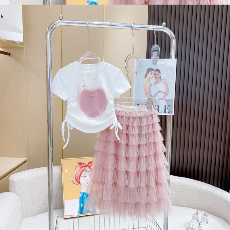소녀 여름 원피스 세트 2025 새로운 어린이 여름 반팔 미디 어린이 메쉬 원피스 소녀 스타일 투피스 세트스토어 가기