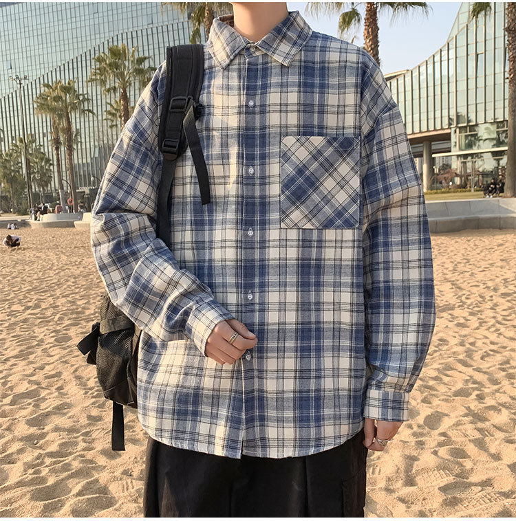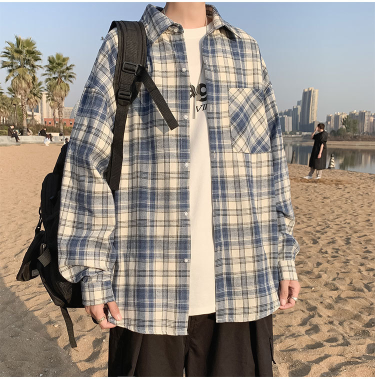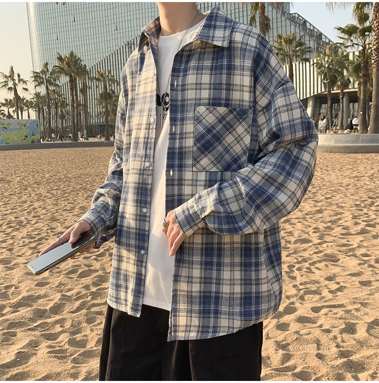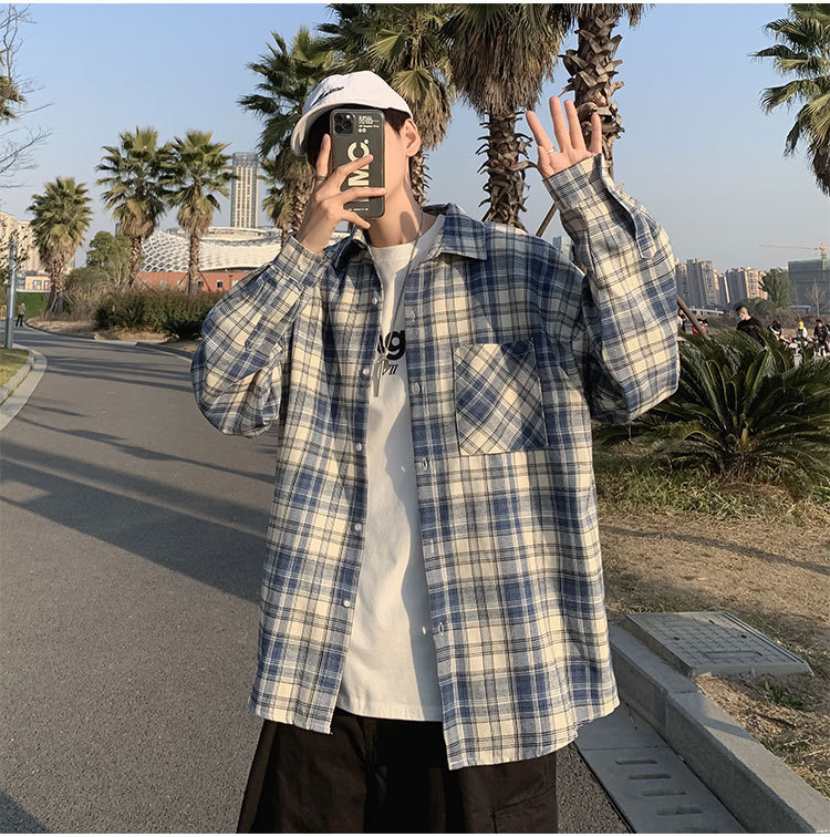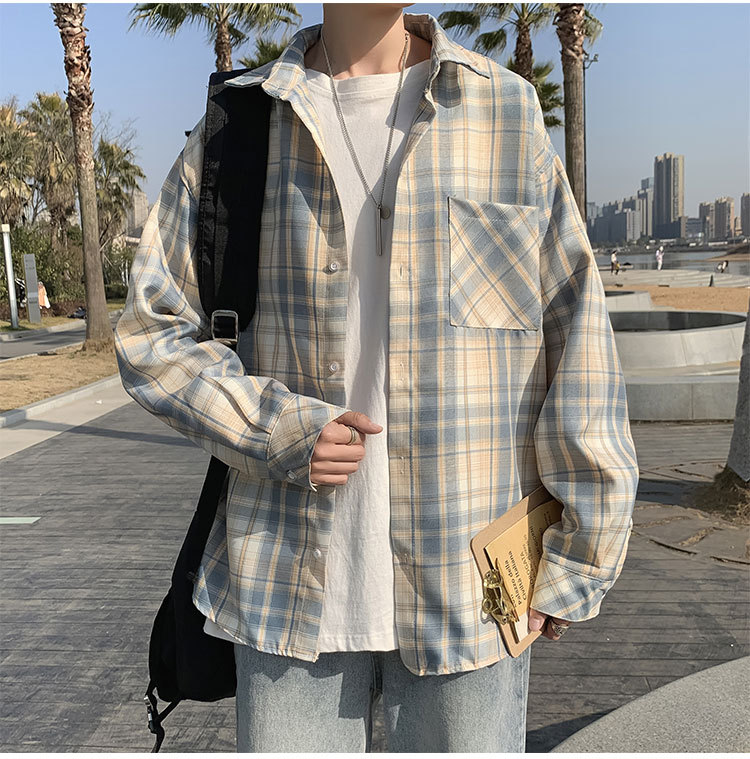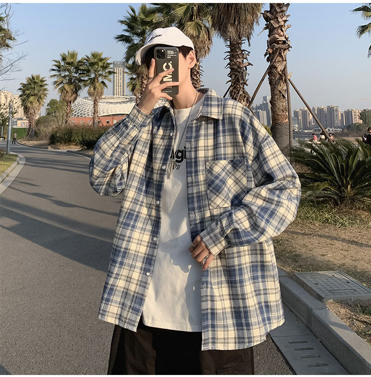 2025 봄과 가을 새로운 도착 격자 무늬 셔츠 남자 긴팔 Ins 홍콩 스타일 트렌디 한 브랜드 일본 스타일 느슨한 올매치 유행 BF 재킷스토어 가기