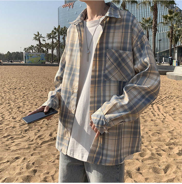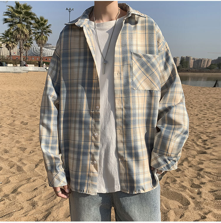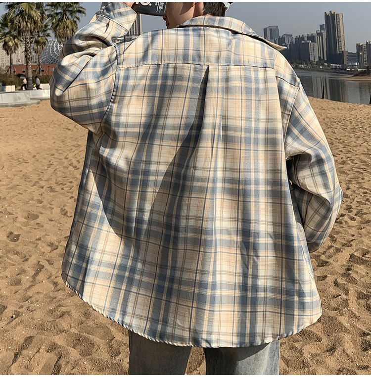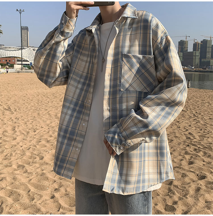 2025 봄과 가을 새로운 도착 격자 무늬 셔츠 남자 긴팔 Ins 홍콩 스타일 트렌디 한 브랜드 일본 스타일 느슨한 올매치 유행 BF 재킷