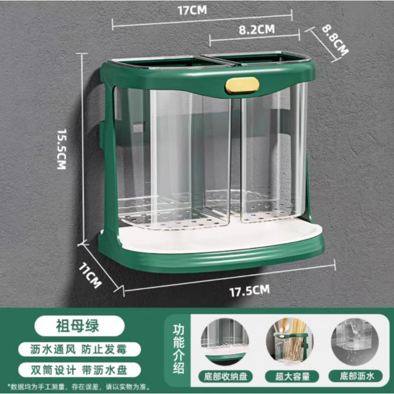 • 成成筷笼【轻奢绿】双筒 带沥水盘(可壁挂可台面)★