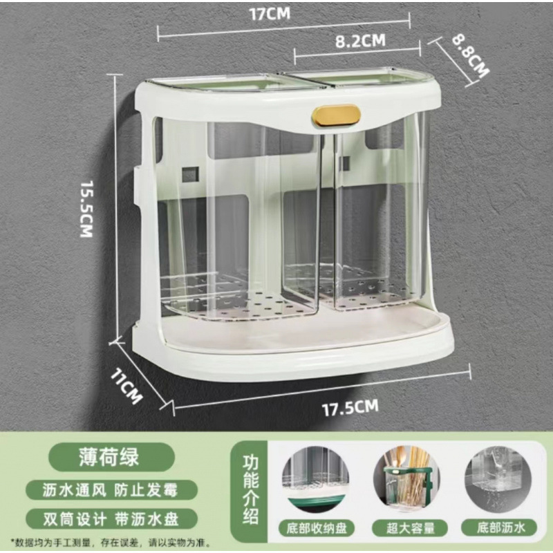 • 成成筷笼【浅衫绿】双筒 带沥水盘(可壁挂可台面)★