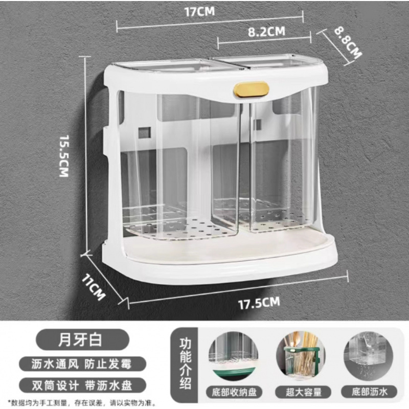 • 成成筷笼【优雅白】双筒 带沥水盘(可壁挂可台面)★