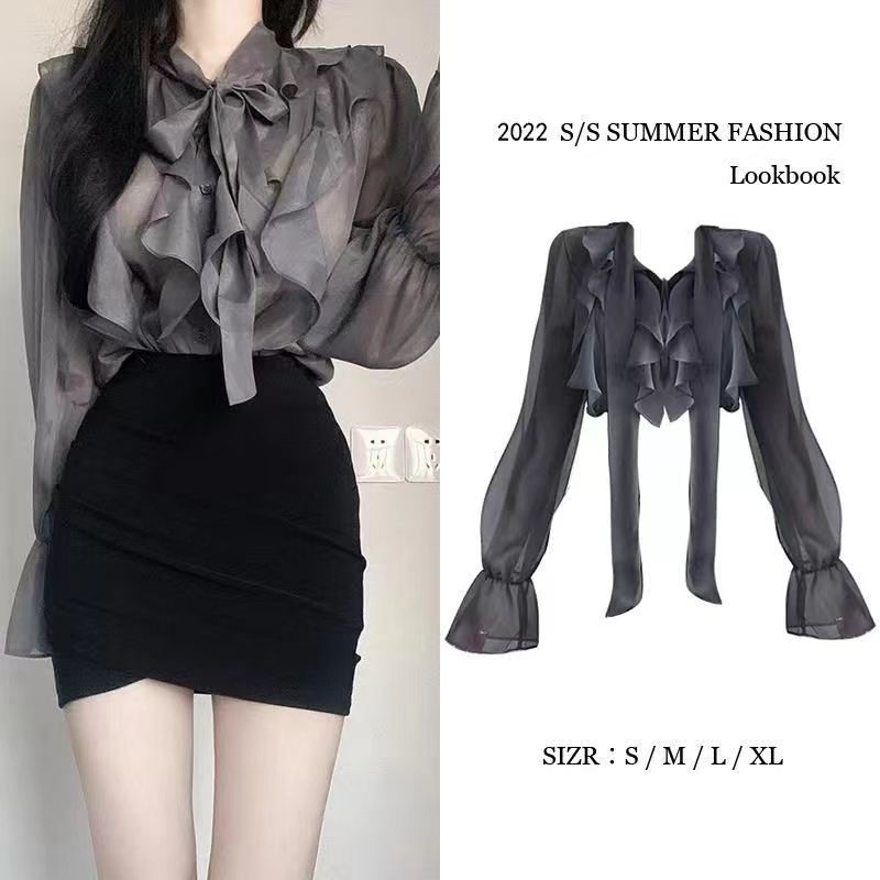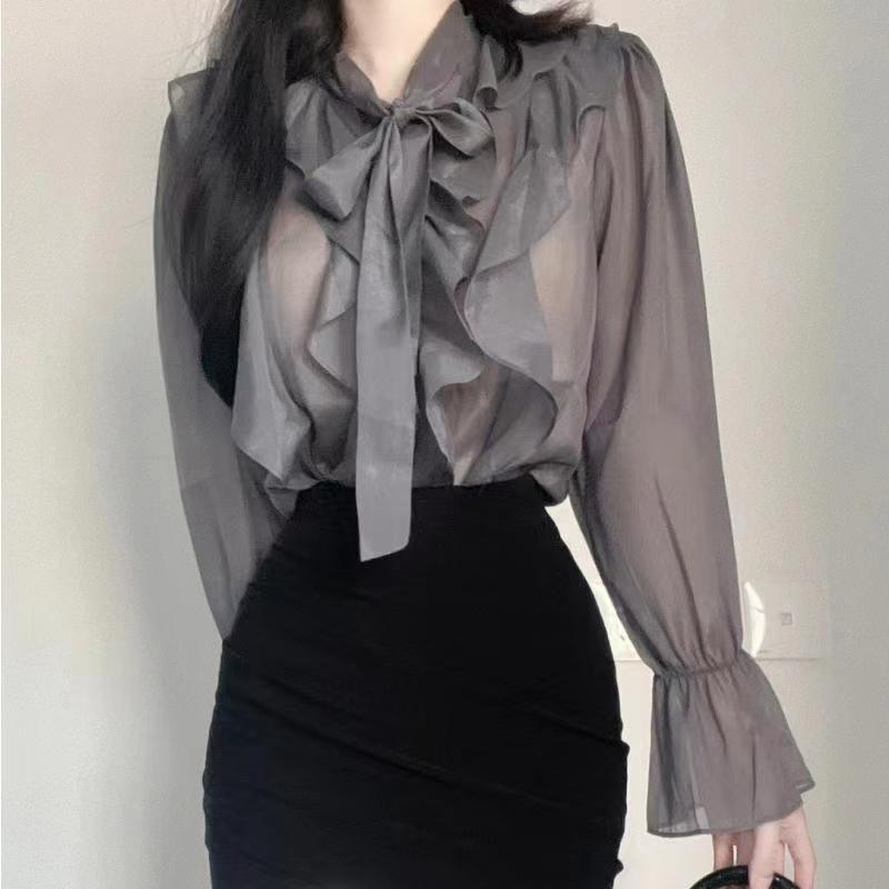 셔츠 우아한 두 조각 품질 새로운 여성의 최고 봄과 가을 엉덩이 스커트 로얄 자매 라이트 성숙한 바람 회색스토어 가기