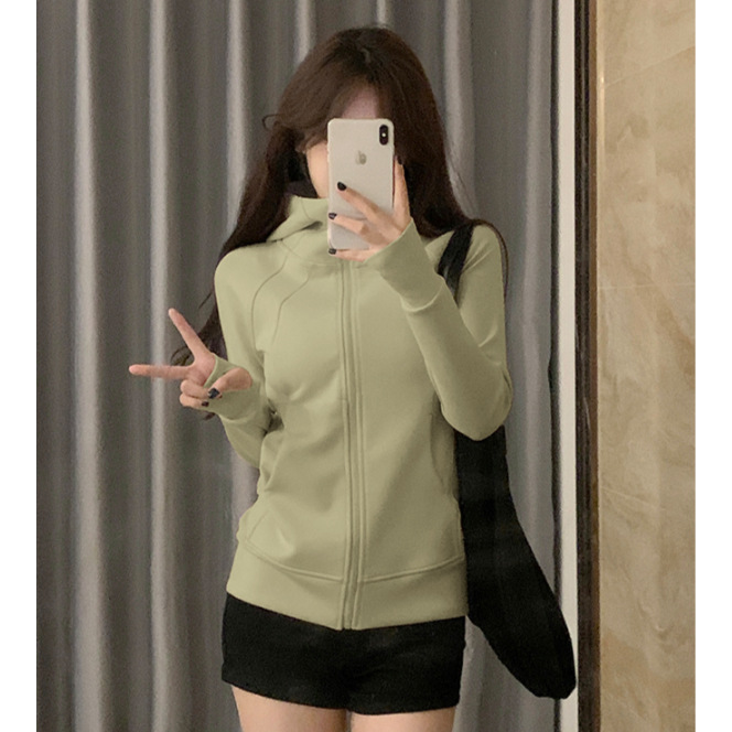 L 봄과 가을 봄 착용 후드 후드 어깨 스포츠 타이트 허리 탑 짧은 흰색 슬림 핏 재킷스토어 가기