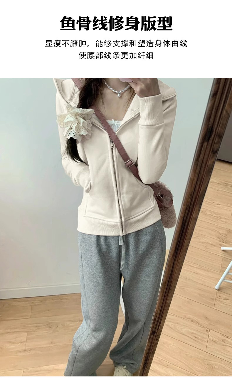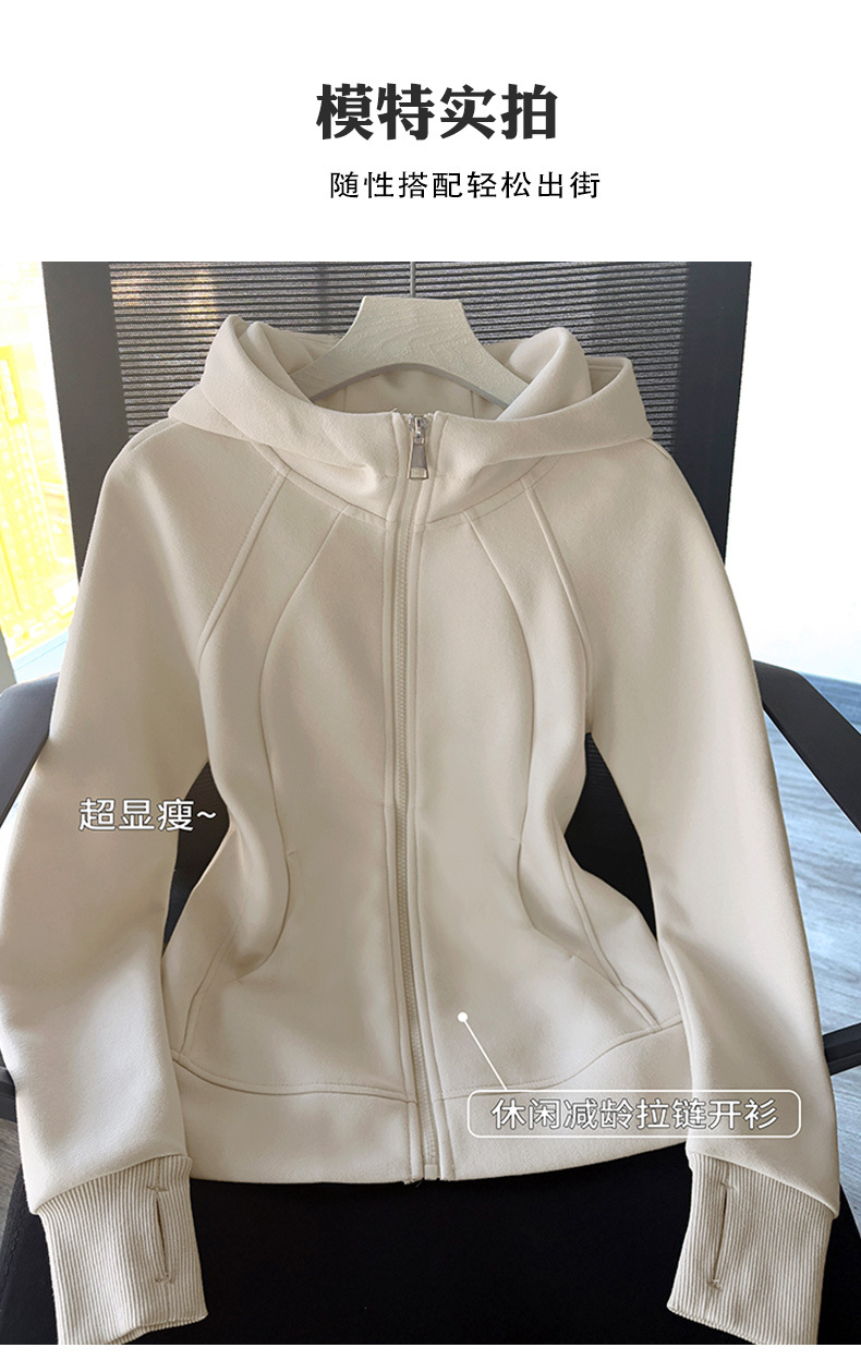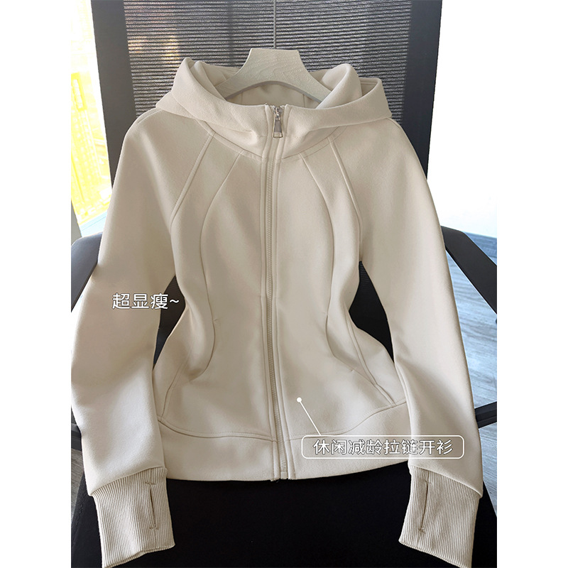 L 봄과 가을 봄 착용 후드 후드 어깨 스포츠 타이트 허리 탑 짧은 흰색 슬림 핏 재킷