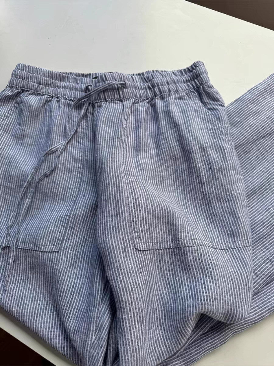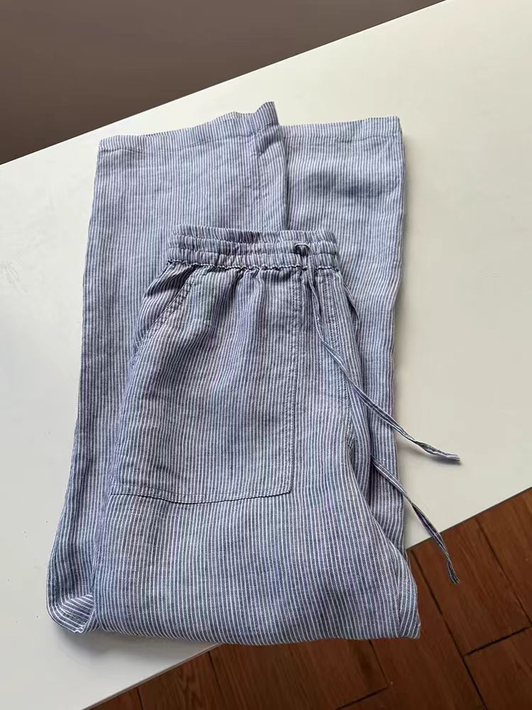 怒推,贸易公司单!!品P料~舒适百搭亚麻条纹抽绳慵懒松弛感