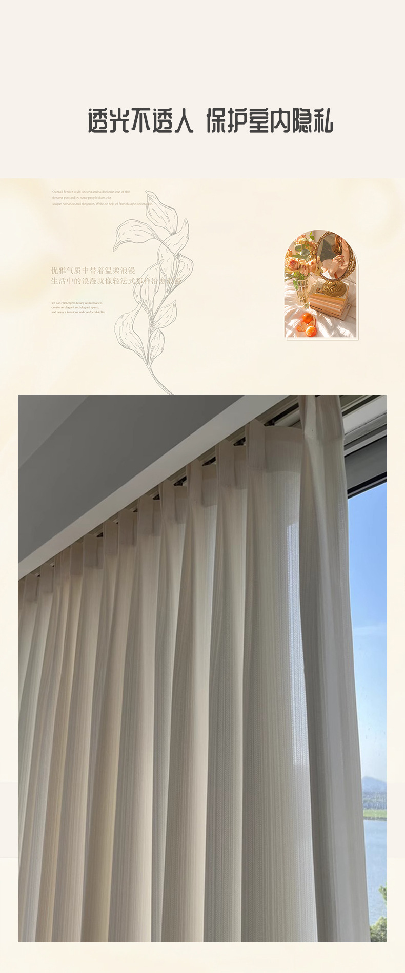 유 마이 자외선 차단제 단열 거즈 커튼! 크림 스타일 두꺼운 거울 원사 커튼 프랑스 거실 발코니 투명