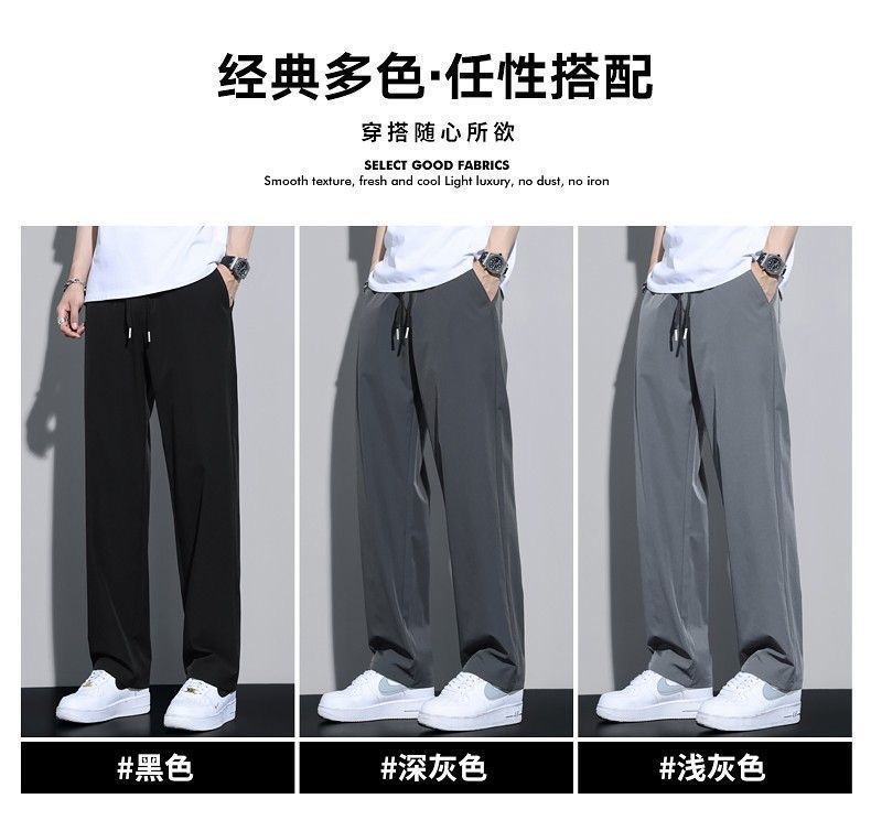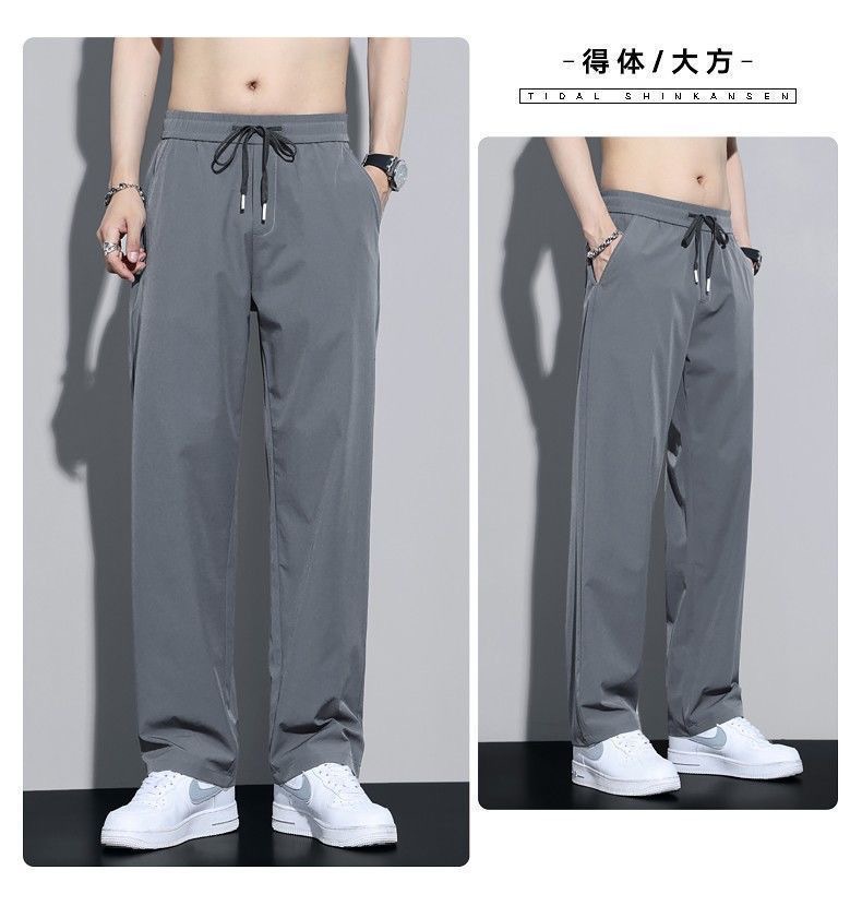 새로운 아이스 실크 빠른 건조 캐주얼 바지 남자 여름 얇은 느슨한 슬리밍 바지 스포츠 바지 스트레이트 바지