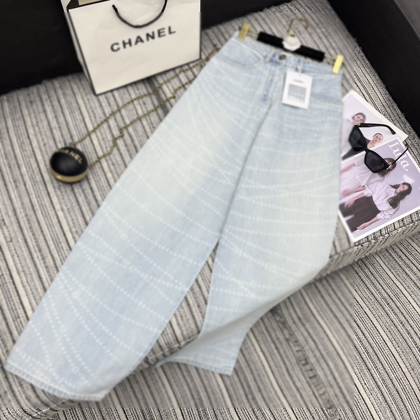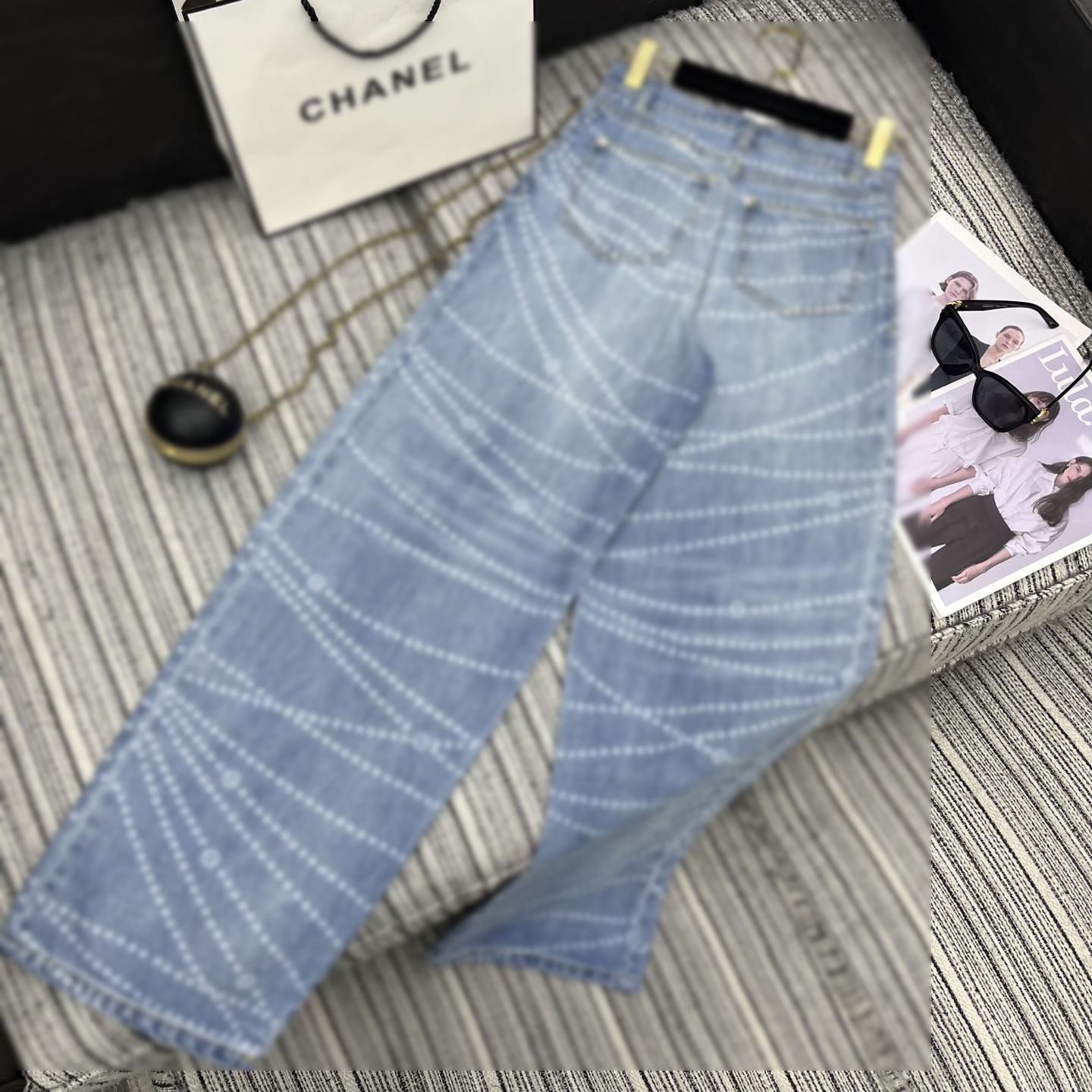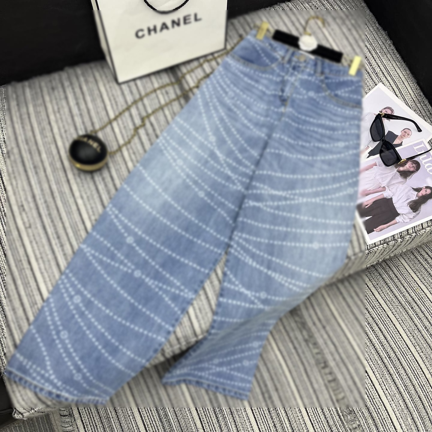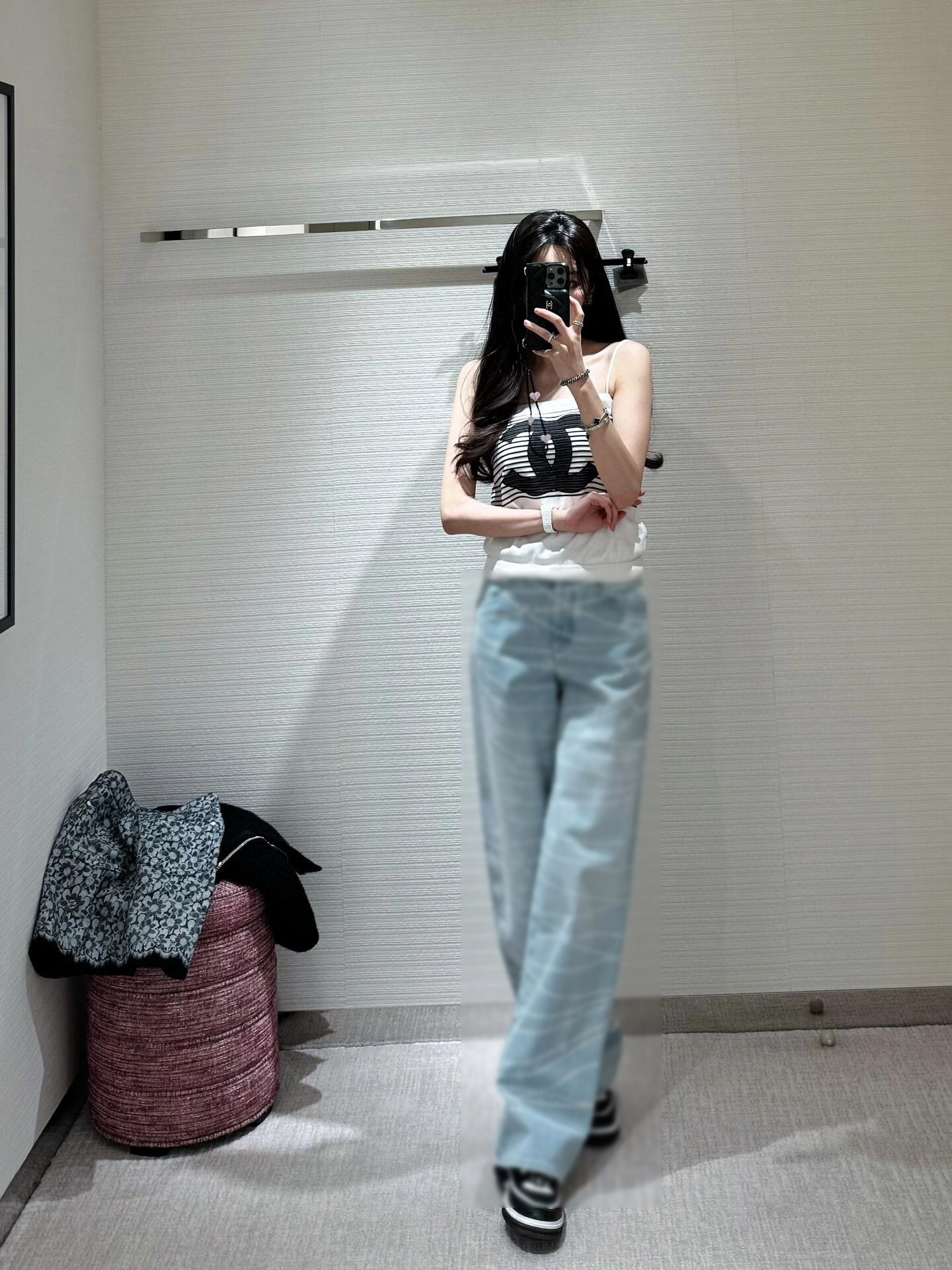 Cha*新款双C logo拉链印花激光烧花牛仔阔腿裤 YB1:1定制 高端品质