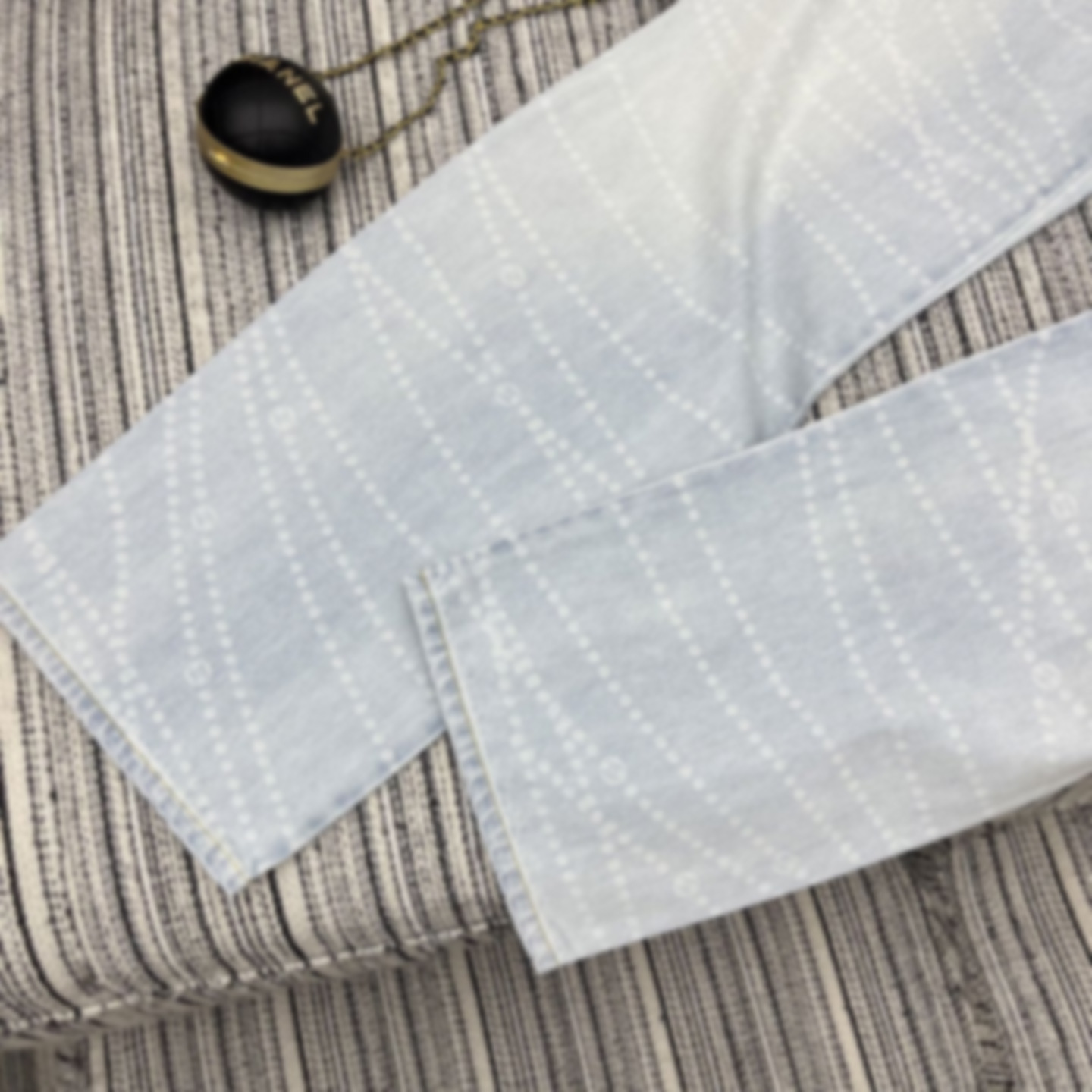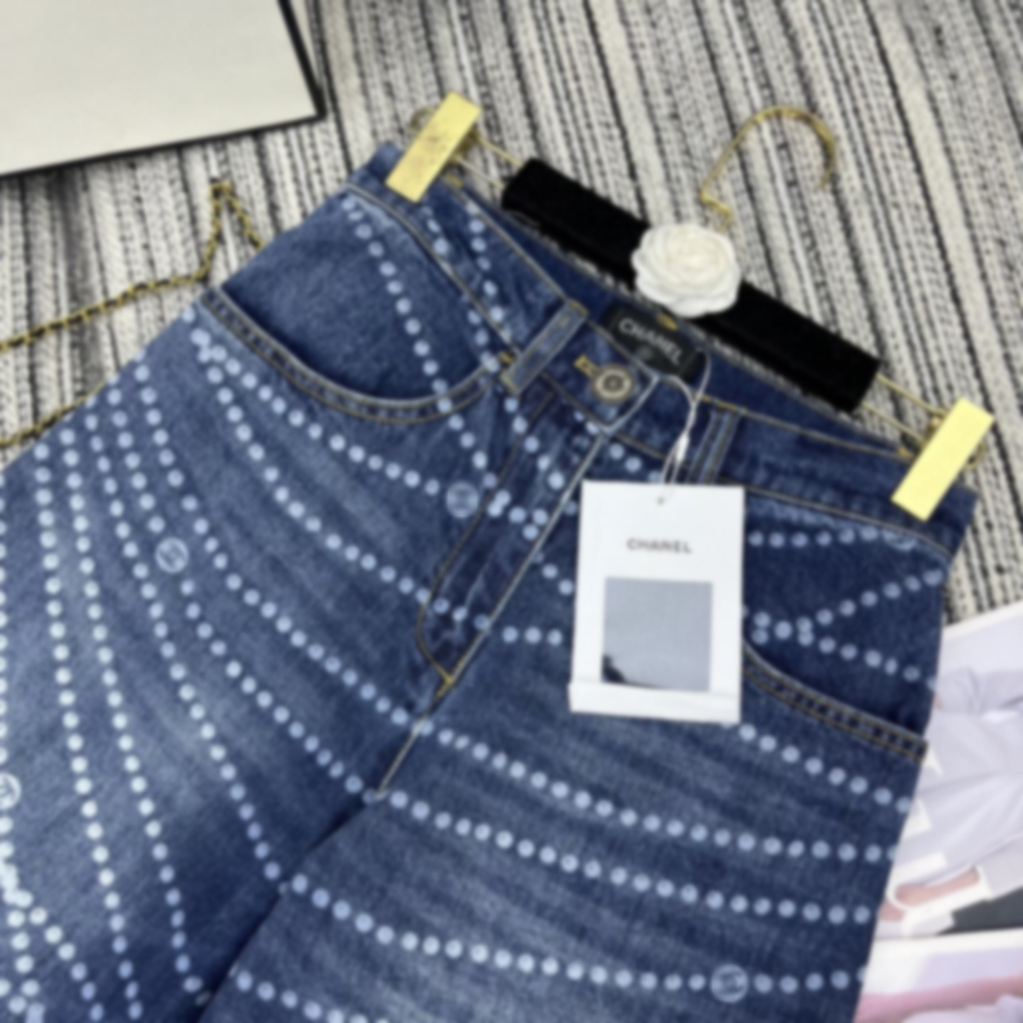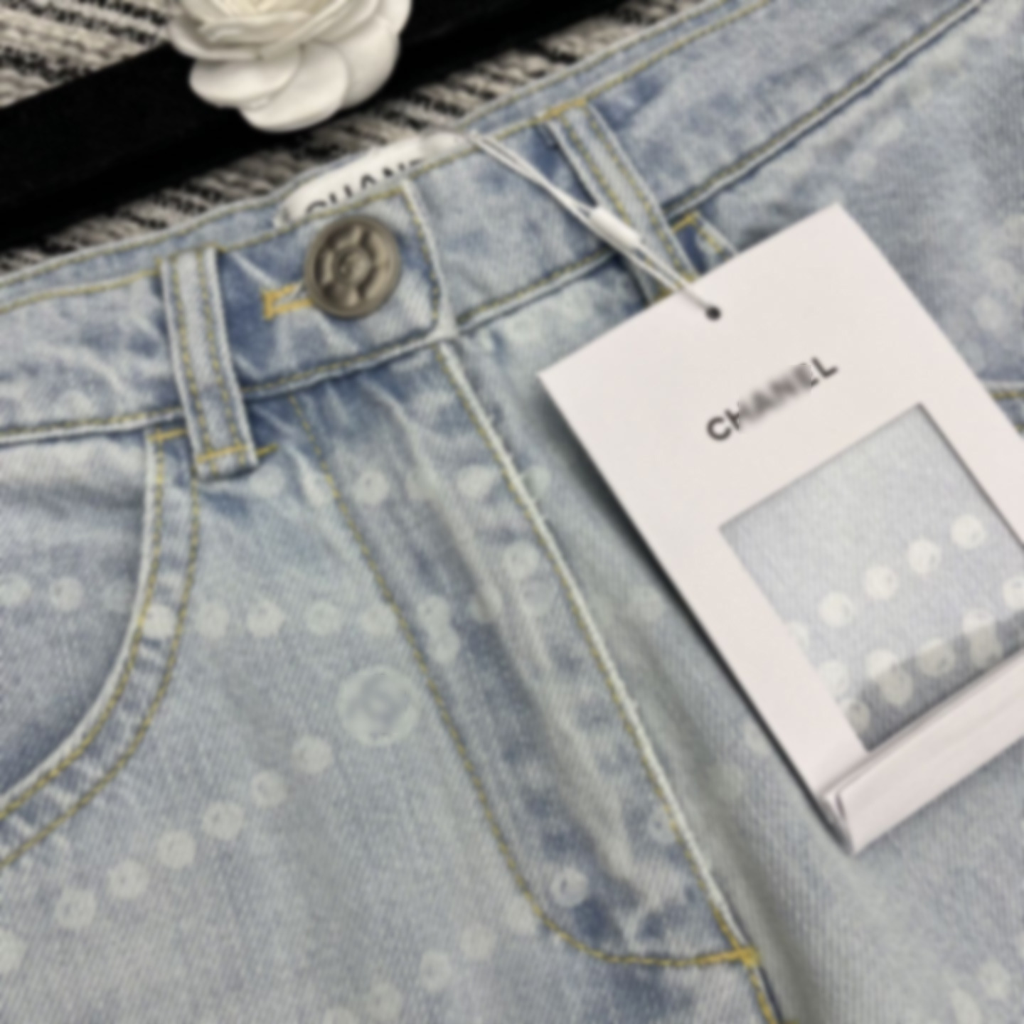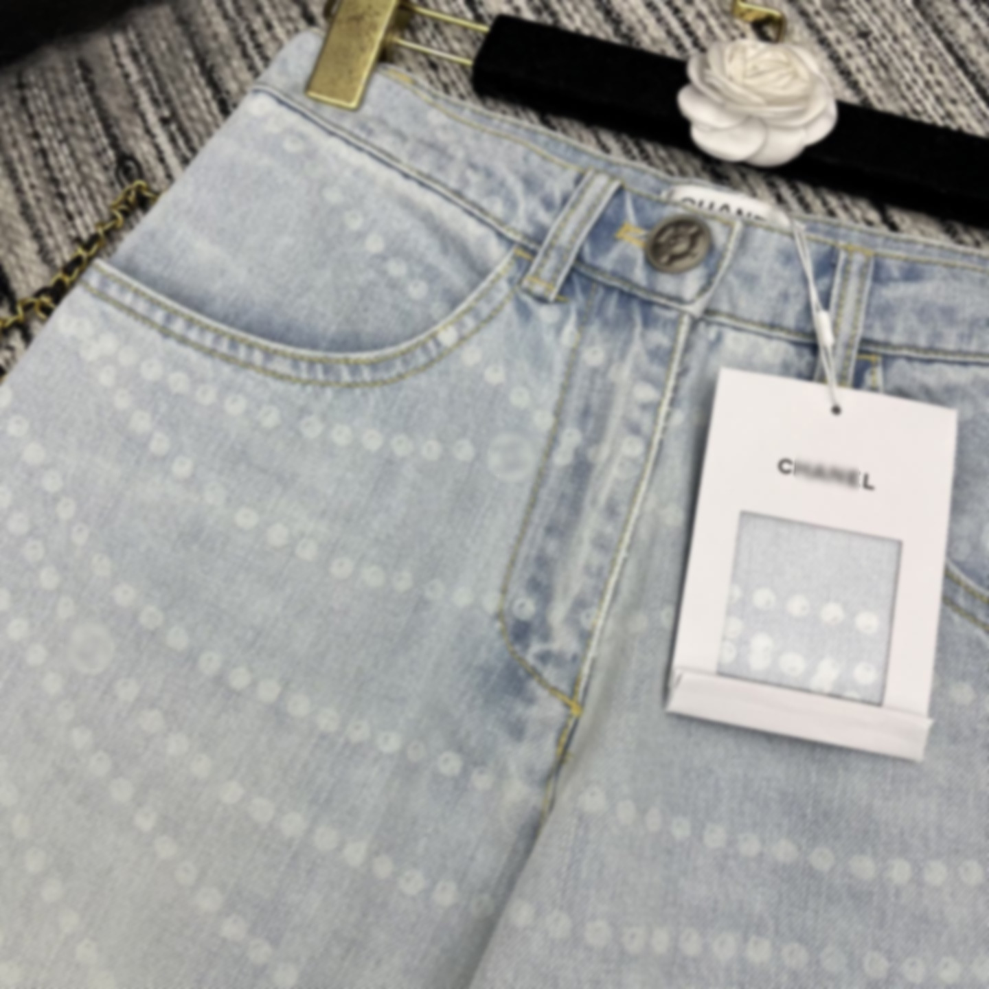 Cha*新款双C logo拉链印花激光烧花牛仔阔腿裤 YB1:1定制 高端品质