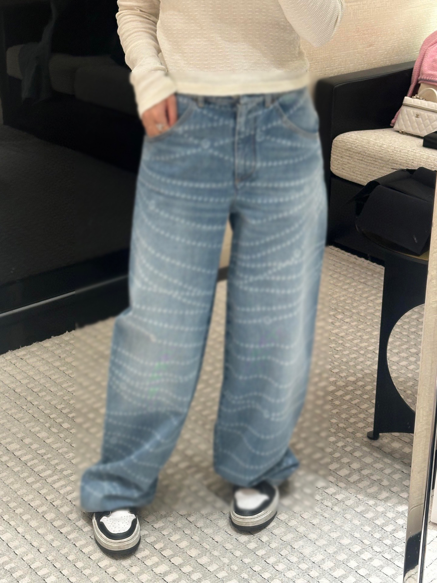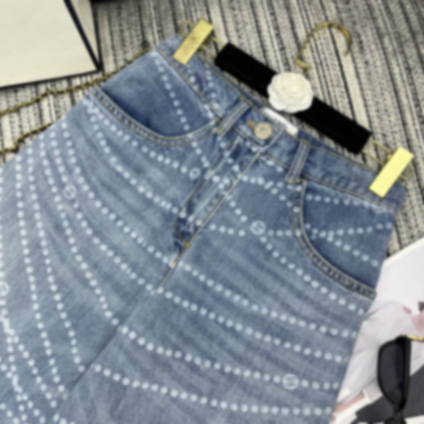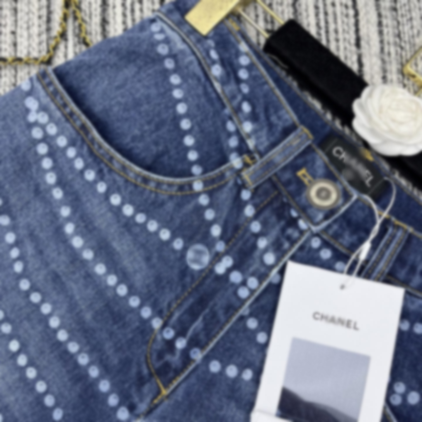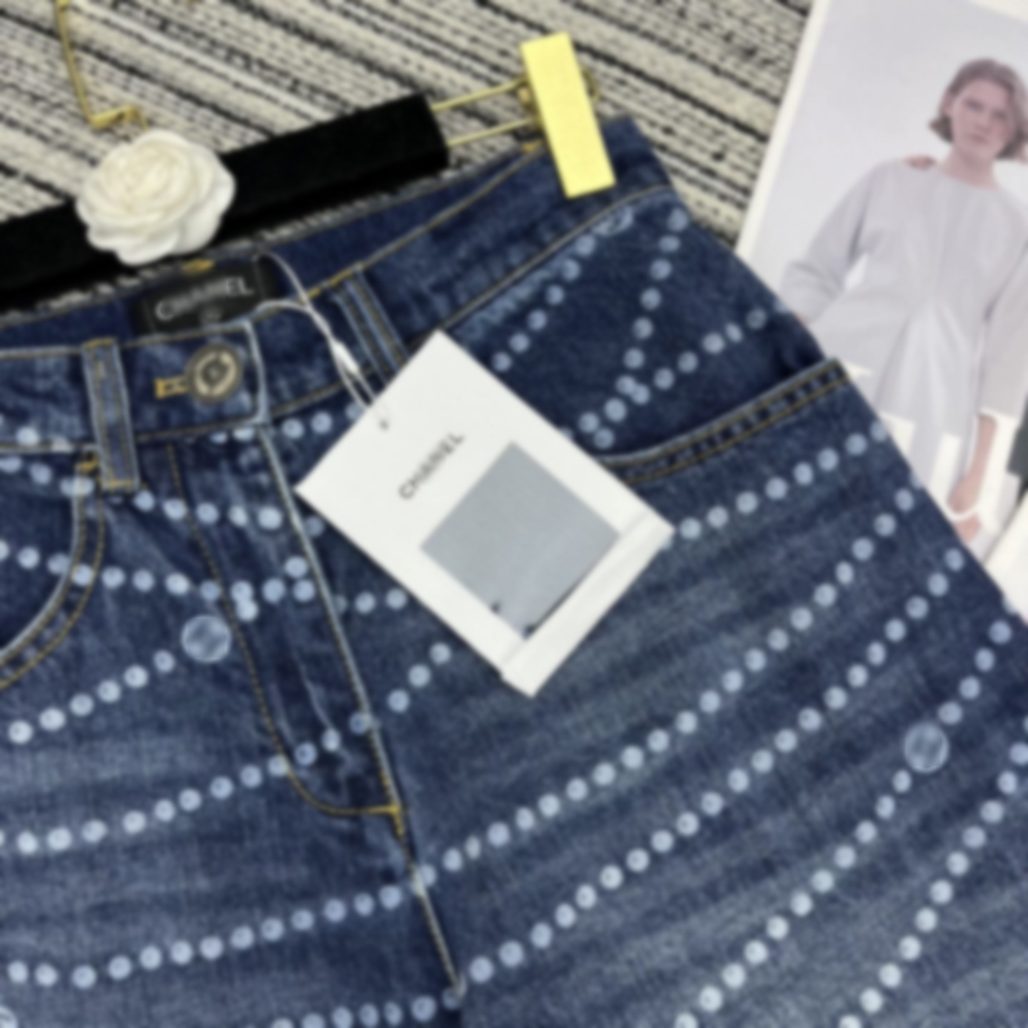 Cha*新款双C logo拉链印花激光烧花牛仔阔腿裤 YB1:1定制 高端品质