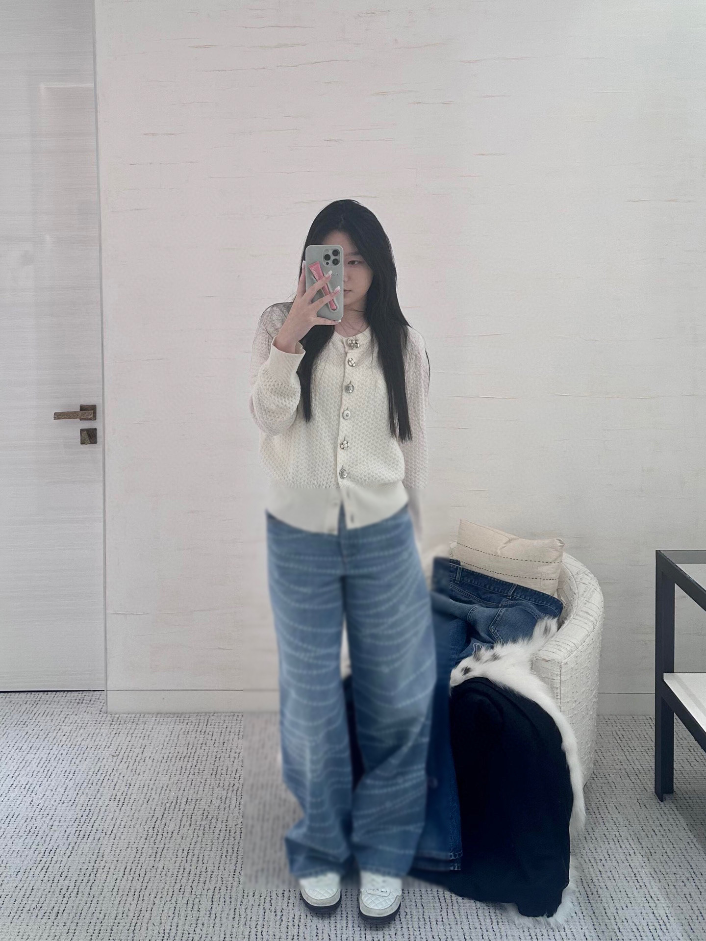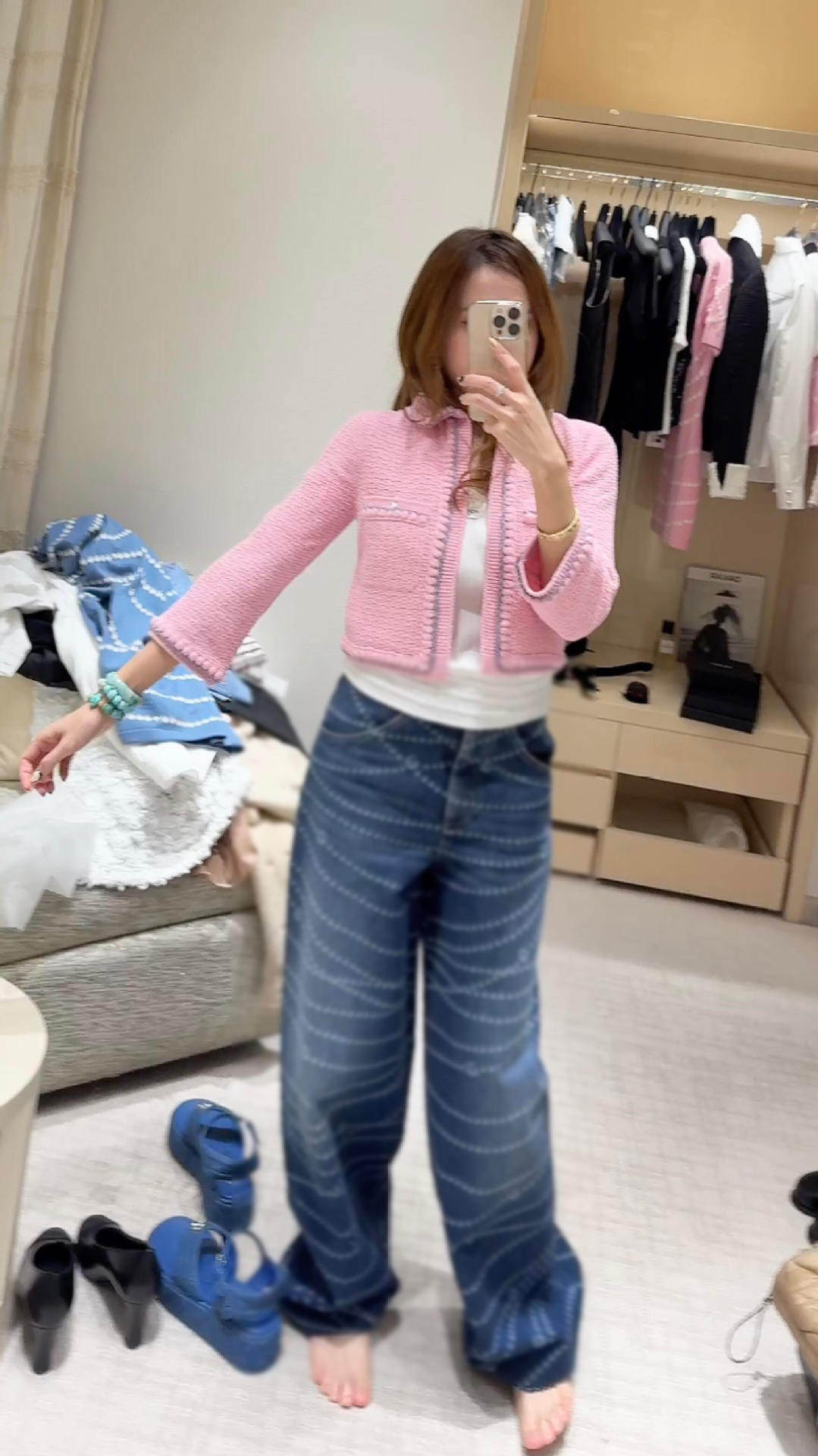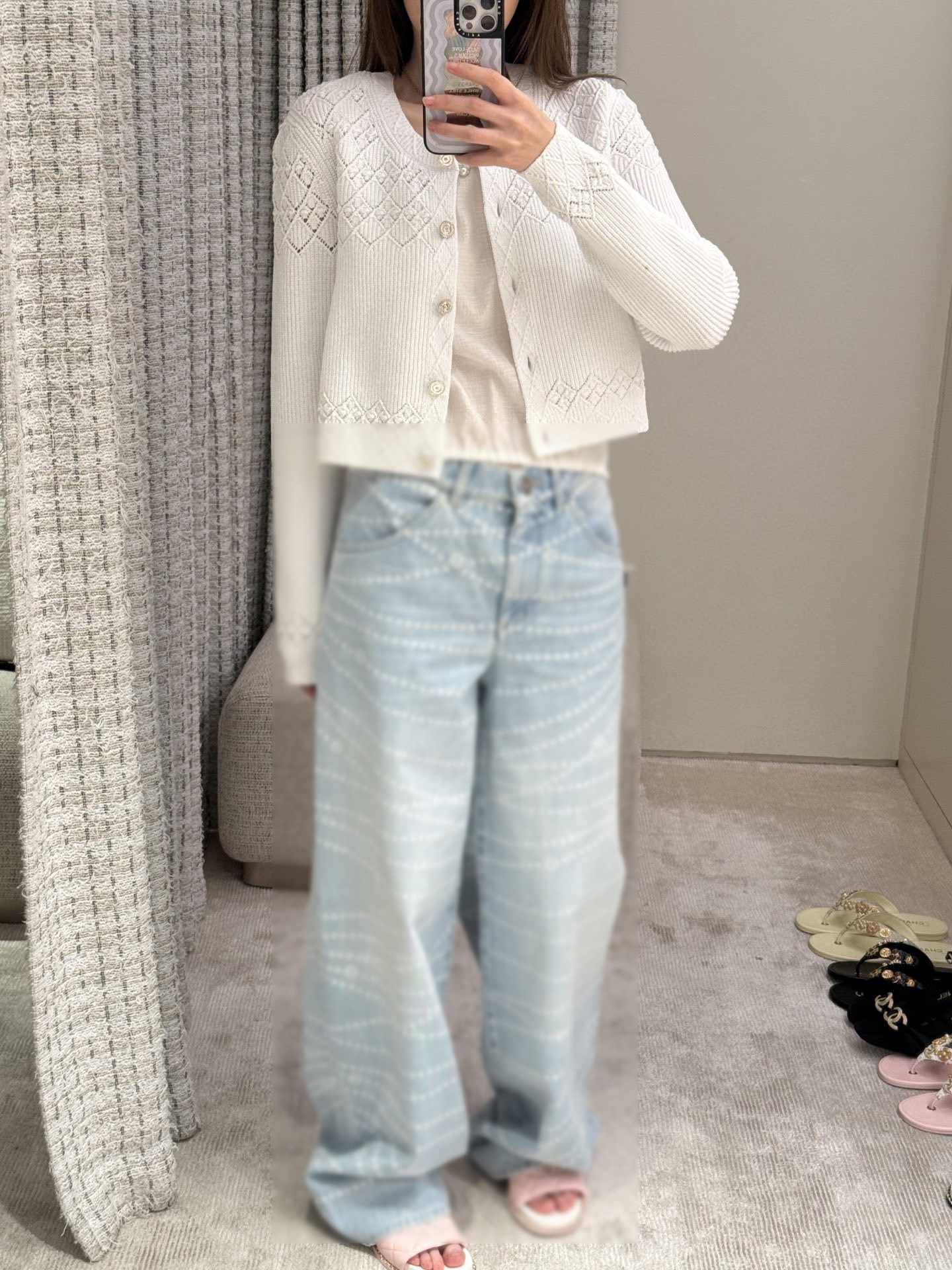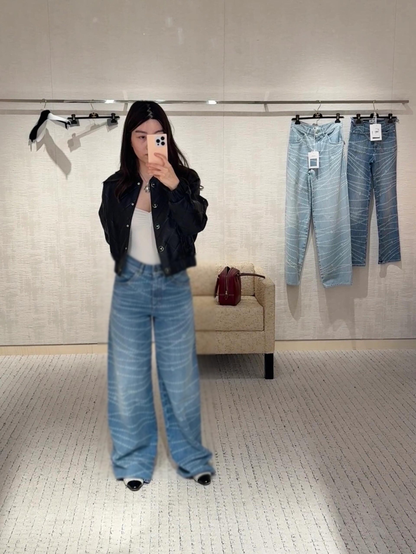 Cha*新款双C logo拉链印花激光烧花牛仔阔腿裤 YB1:1定制 高端品质