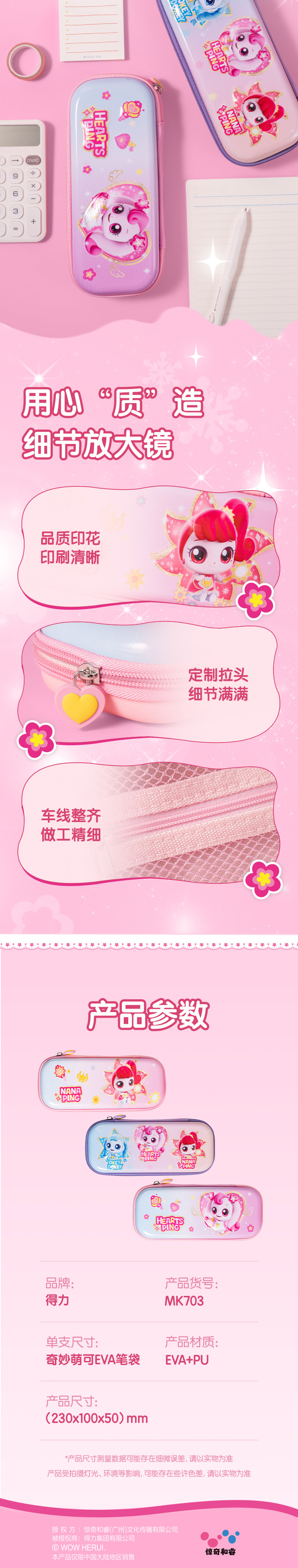 델리 MK703 멋진 Moe EVA 스테레오 펜 케이스 만화 패션 학생 문구 보관 다기능 문구 상자스토어 가기