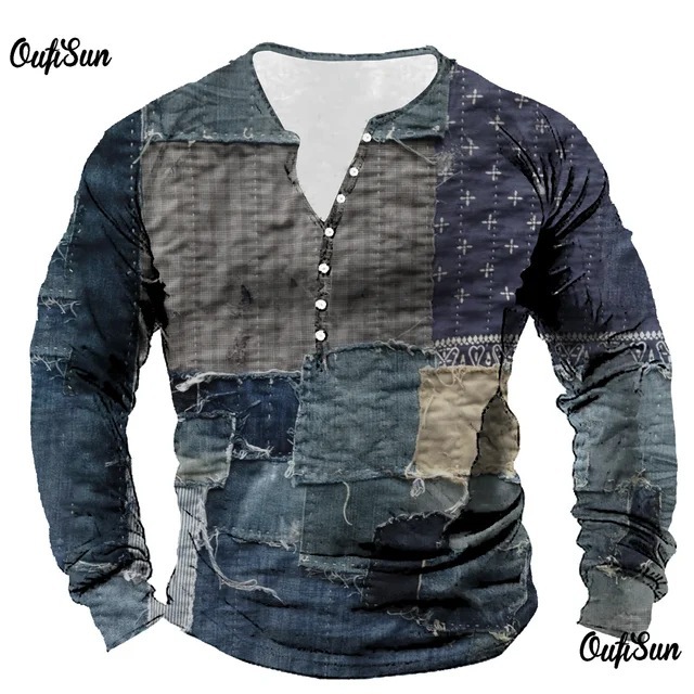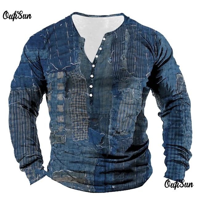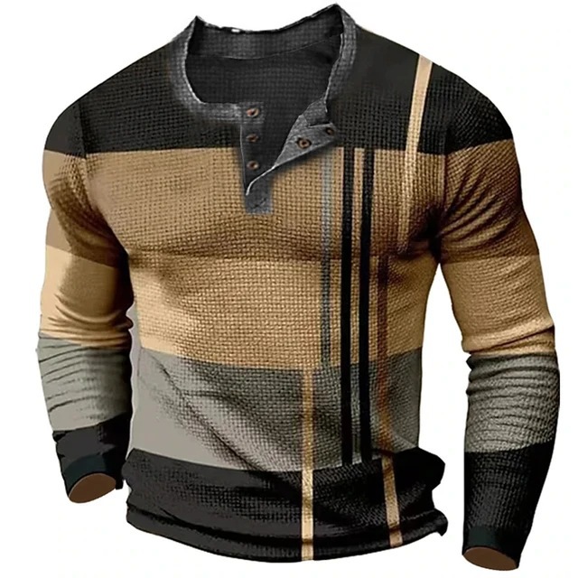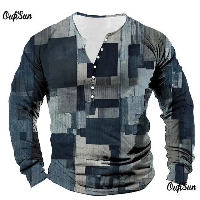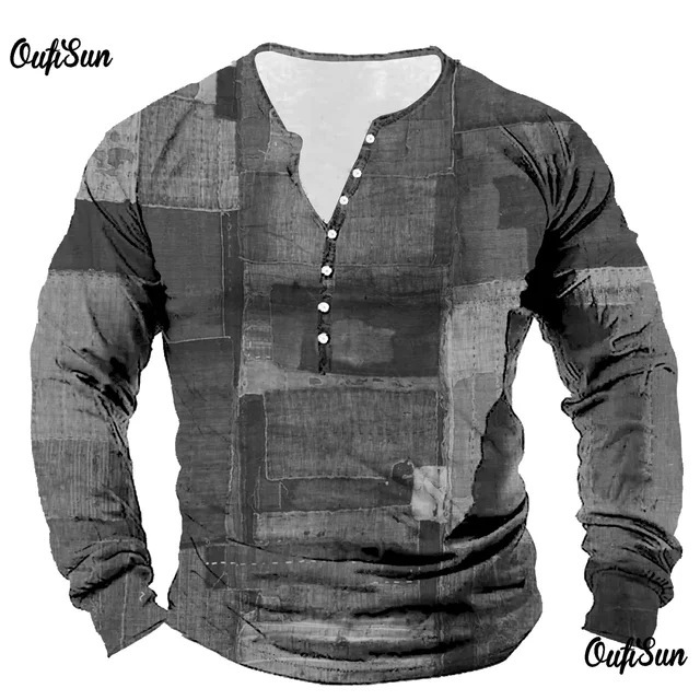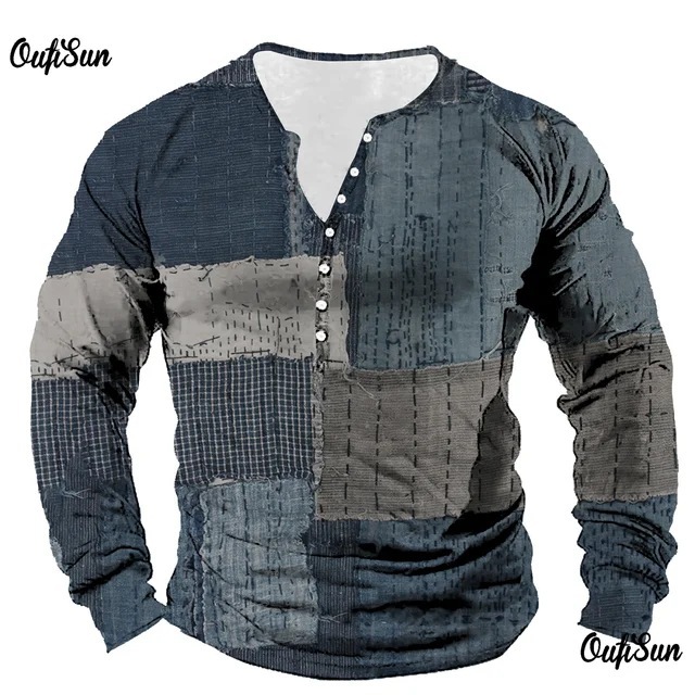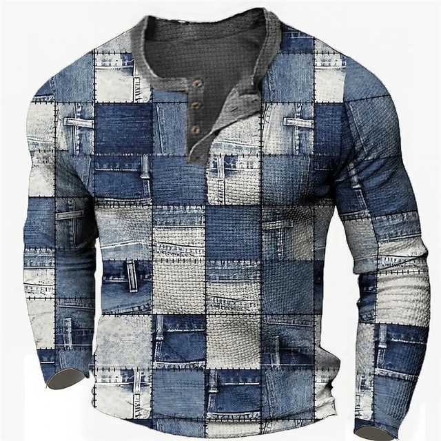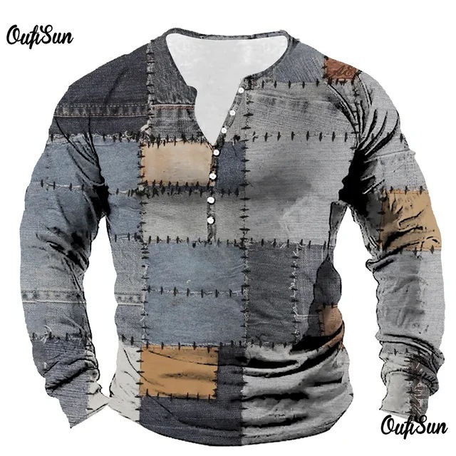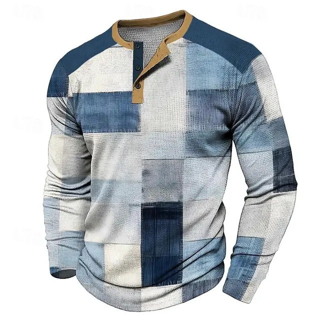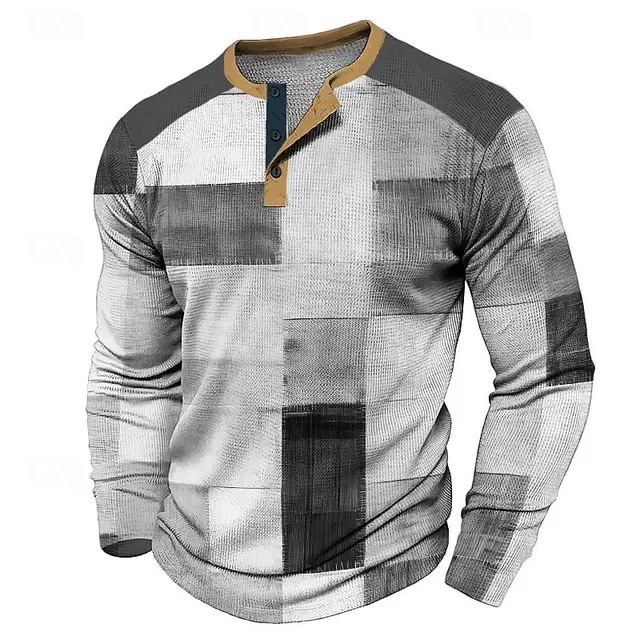 남성용 빈티지 격자 무늬 스웨트 셔츠 격자 무늬 그래픽 스웨트 셔츠 3D 프린트 반소매 스웨트 셔츠 플러스 사이즈 헨리 셔츠스토어 가기