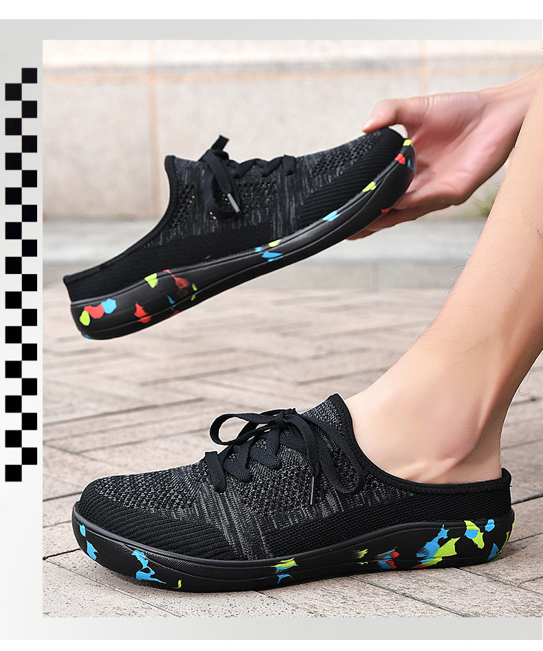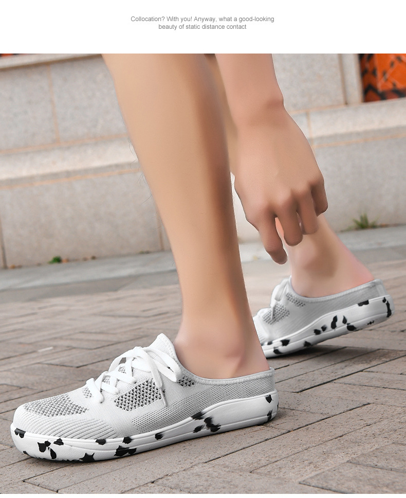국경 간 뉴 플러스 사이즈 캐주얼 남성 신발 경량 슬립 온 플라잉 짠 넓은 양말 신발 여성용 플립 온 트렌디 한 하프 토우스토어 가기