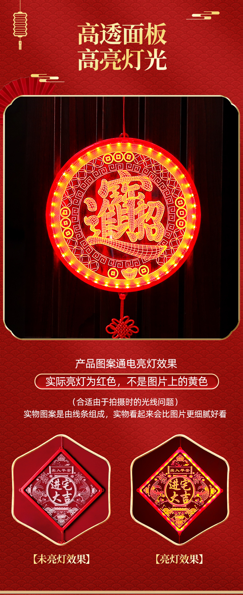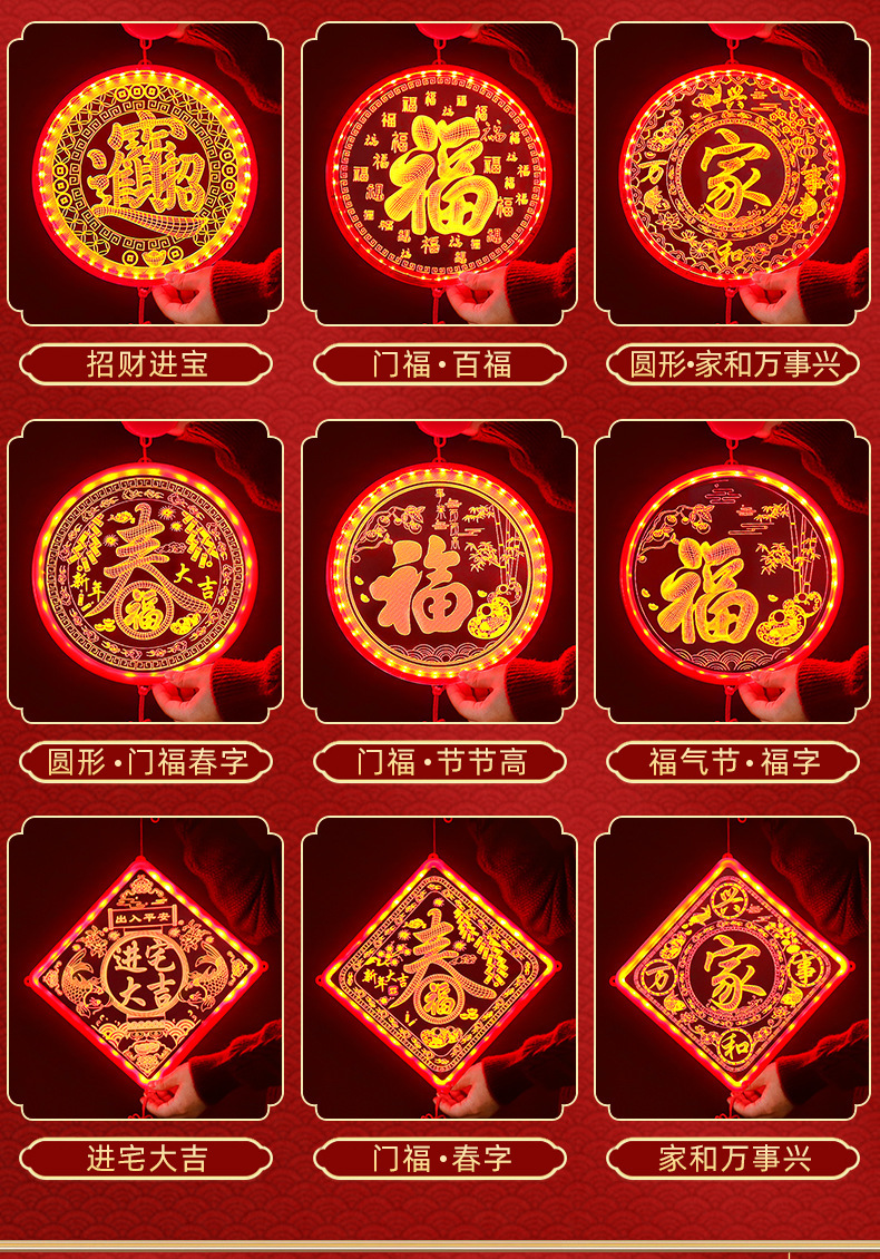 아크릴 빛나는 행운의 단어 새로운 가정 장식 램프 방 발코니 창 LED 램프 장식