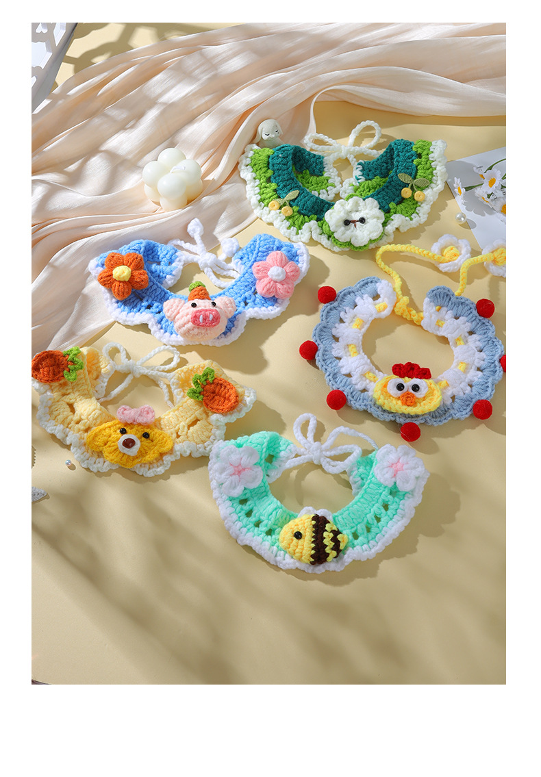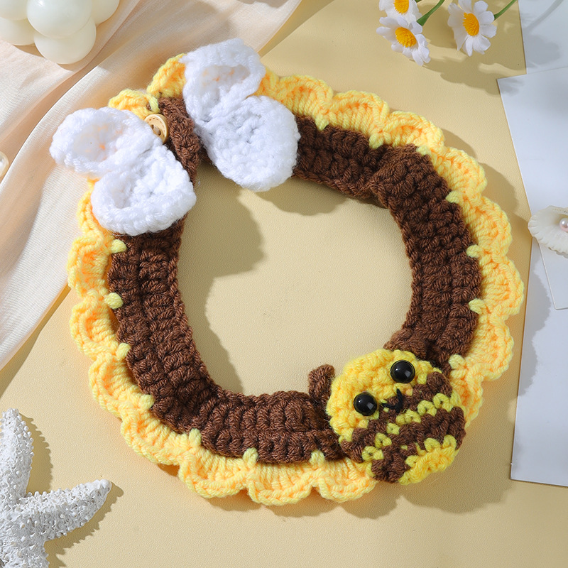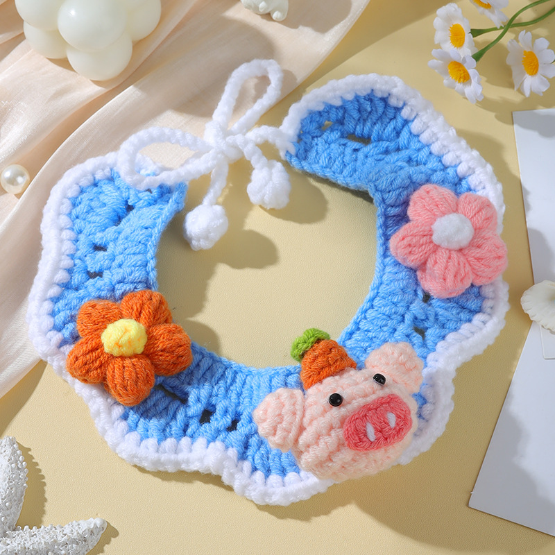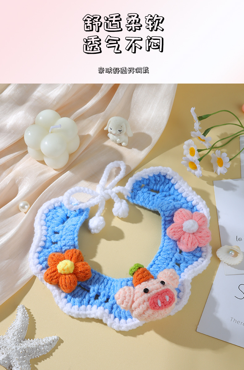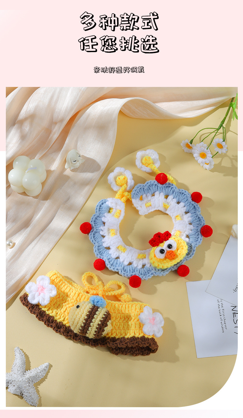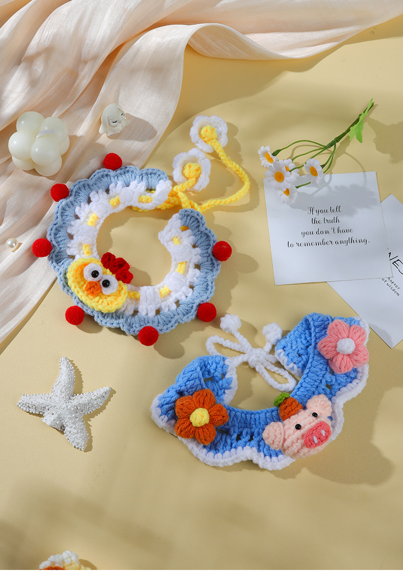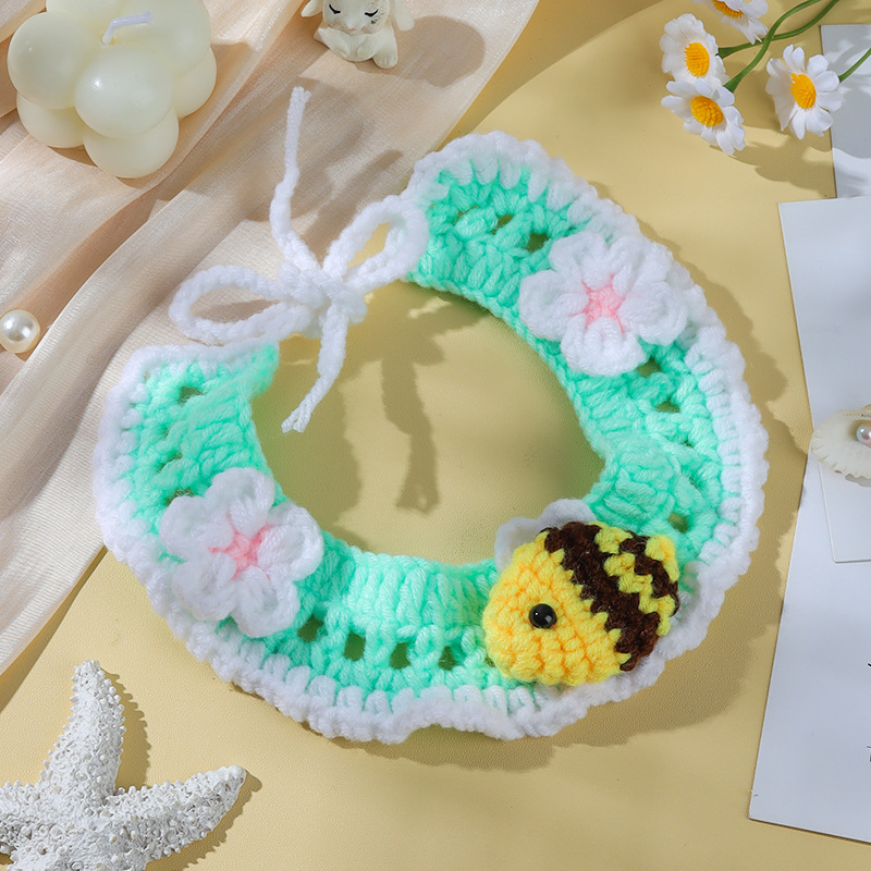 애완 동물 수제 니트 목걸이 고양이 양모 장식 칼라 니트 귀여운 개 턱받이 턱받이 입 사이퍼