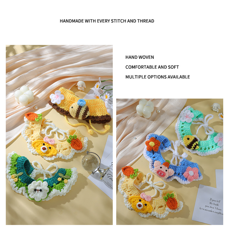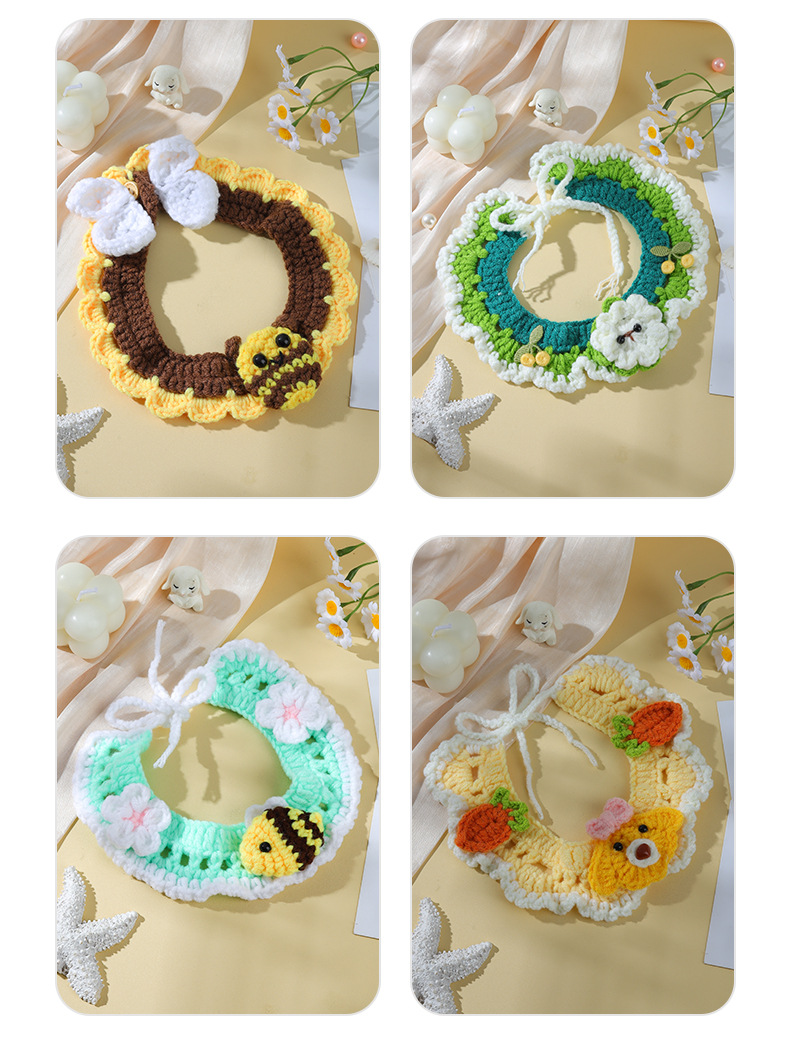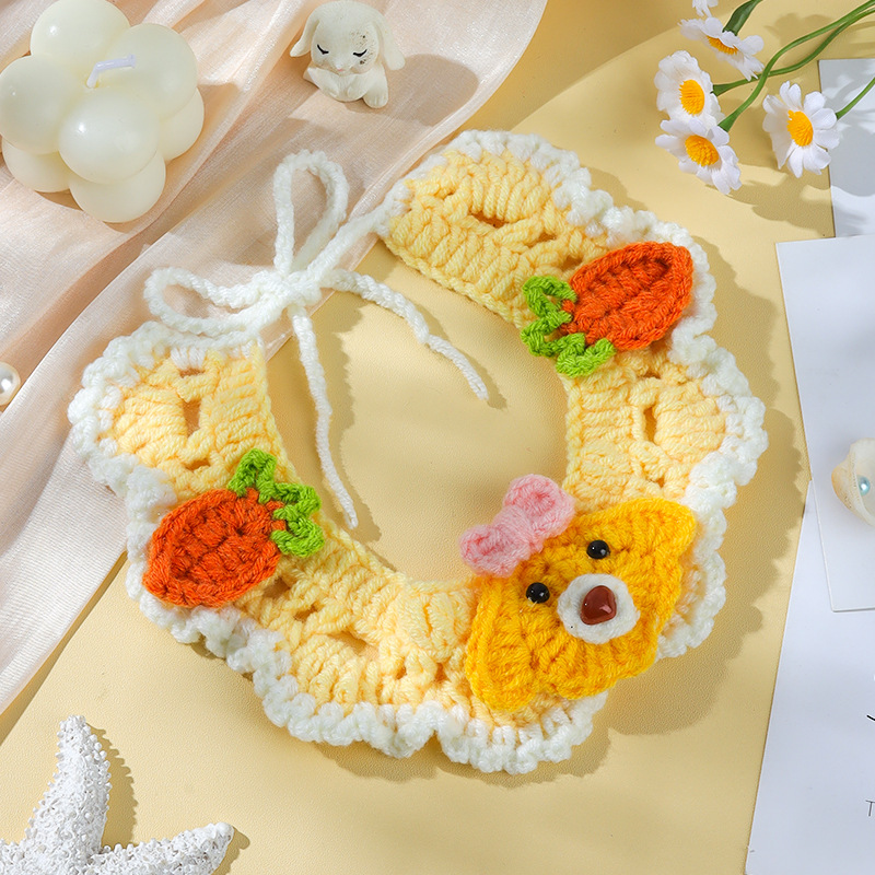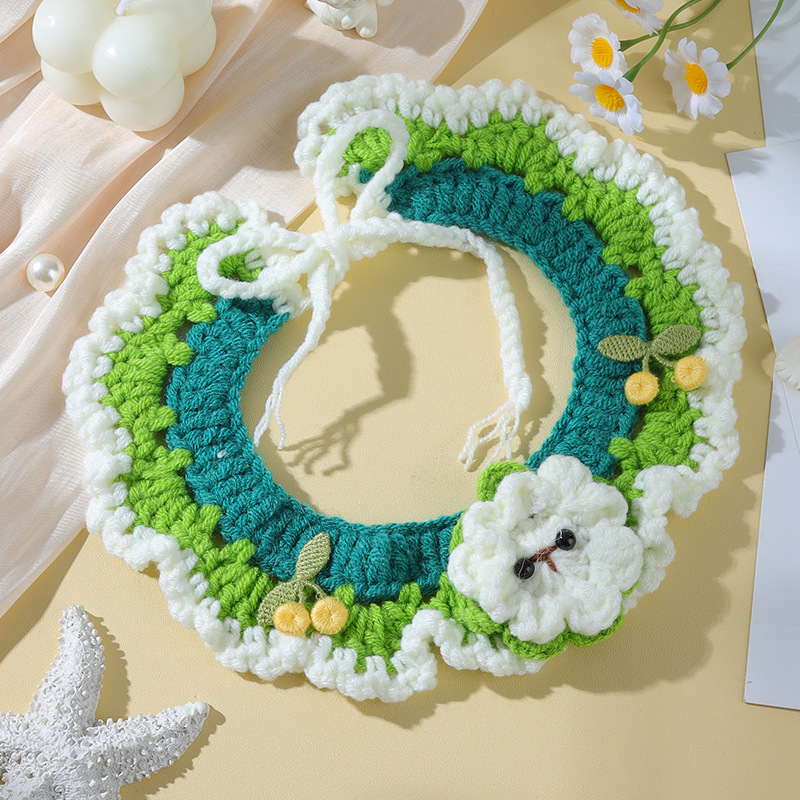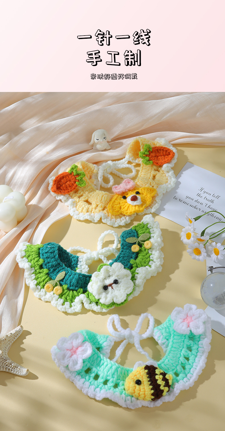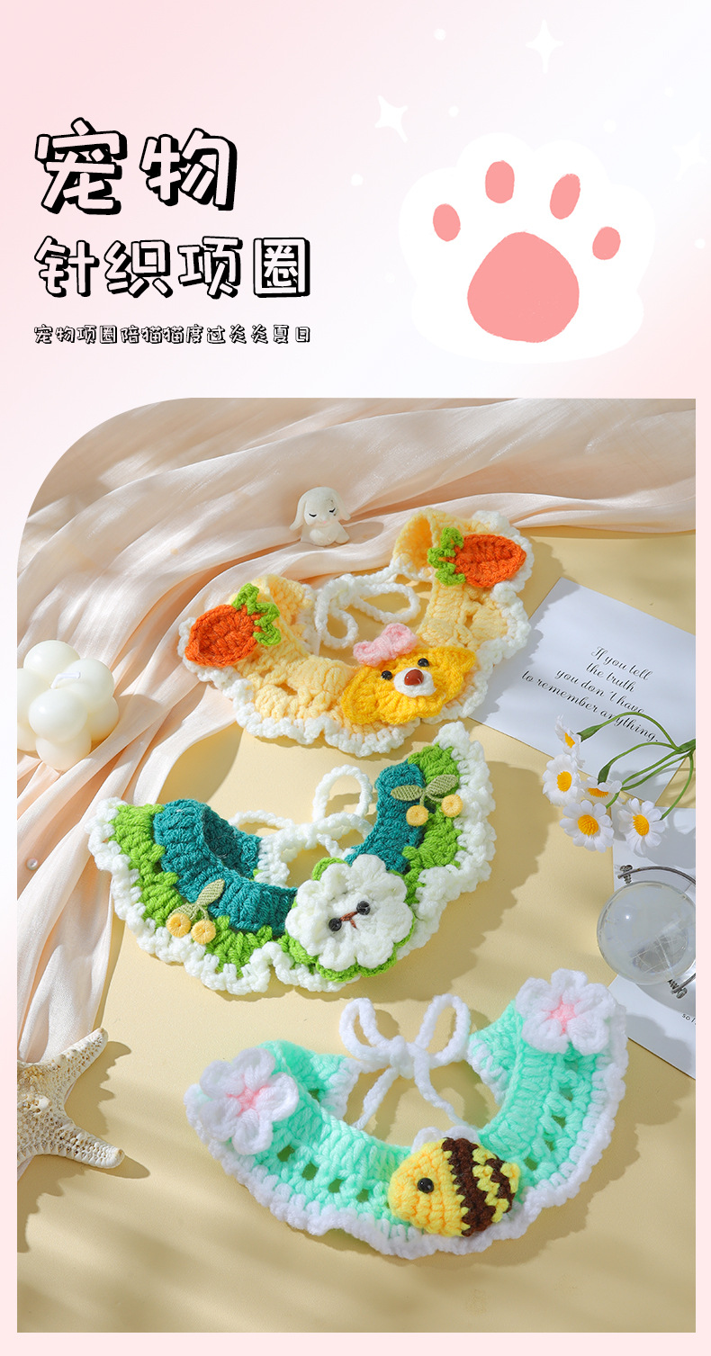 애완 동물 수제 니트 목걸이 고양이 양모 장식 칼라 니트 귀여운 개 턱받이 턱받이 입 사이퍼스토어 가기