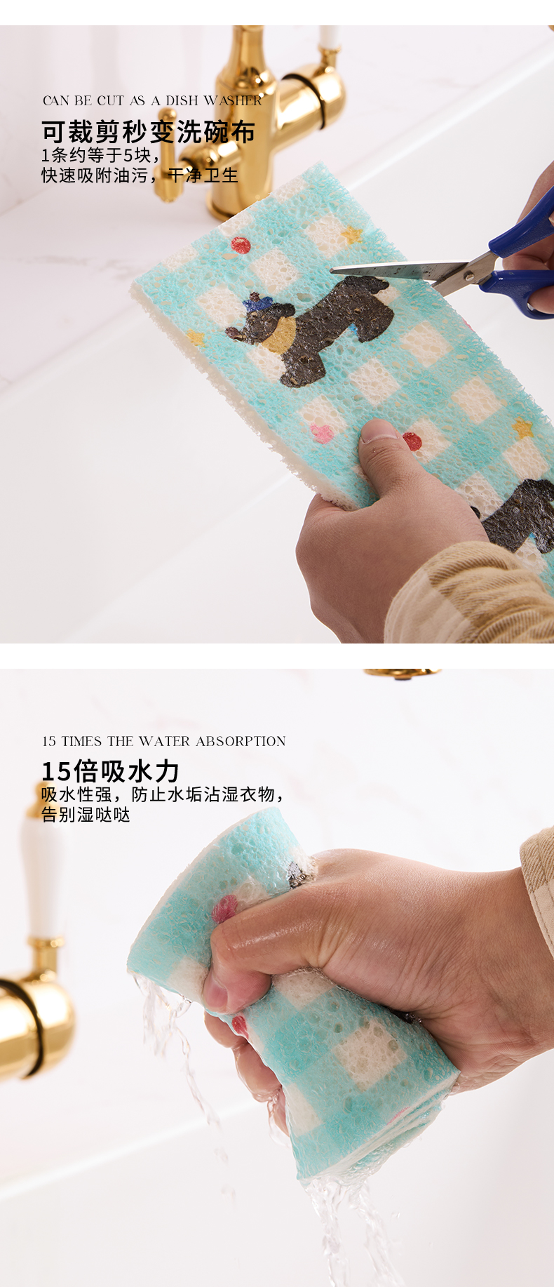 주방 싱크 목재 펄프 면 긴 흡수성 스폰지 패드 싱크 식기 세척 조리대 흡수성 물 압축 스폰지 패드스토어 가기