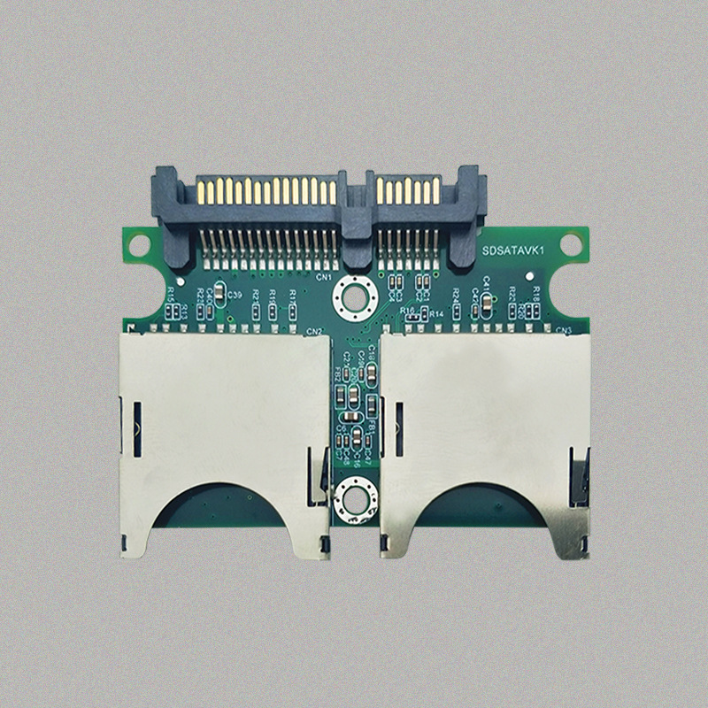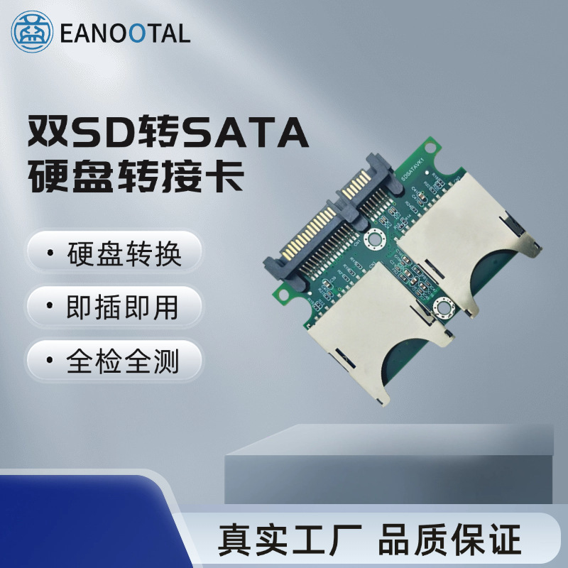 主要功能:SD卡具有体积小、容量大、抗震防潮、耐高温、性能稳定、永久有效保存数据、无噪音、无寻道错误特点。是现今流行的主流产品存储卡。本转接卡实现两路SD卡转换为SATA 15PIN+7PIN接口的SSD。