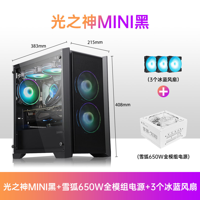 • ☆신 오브 라이트 MINI 블랙 + 스노우폭스 650W 풀 모듈 전원 공급 장치 + 아이스 블루 팬 3개