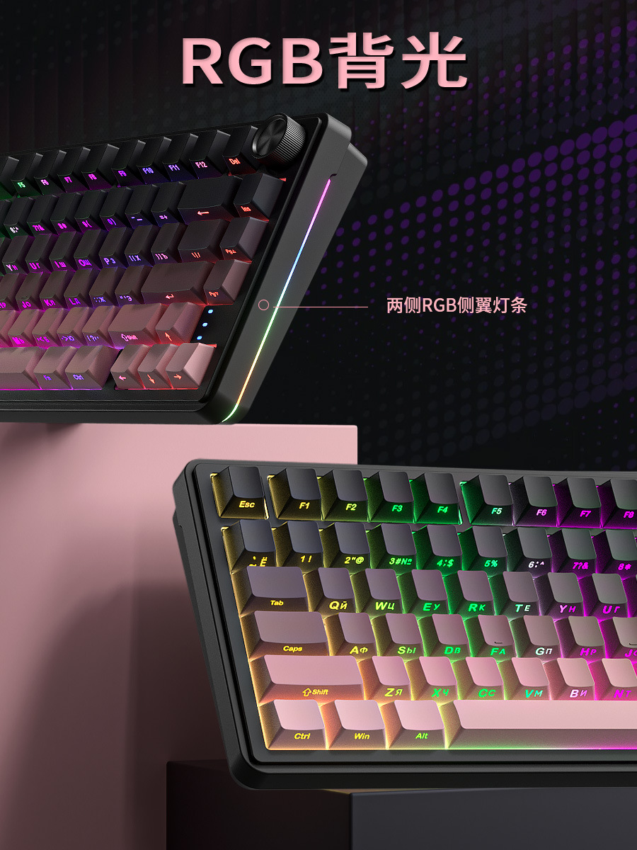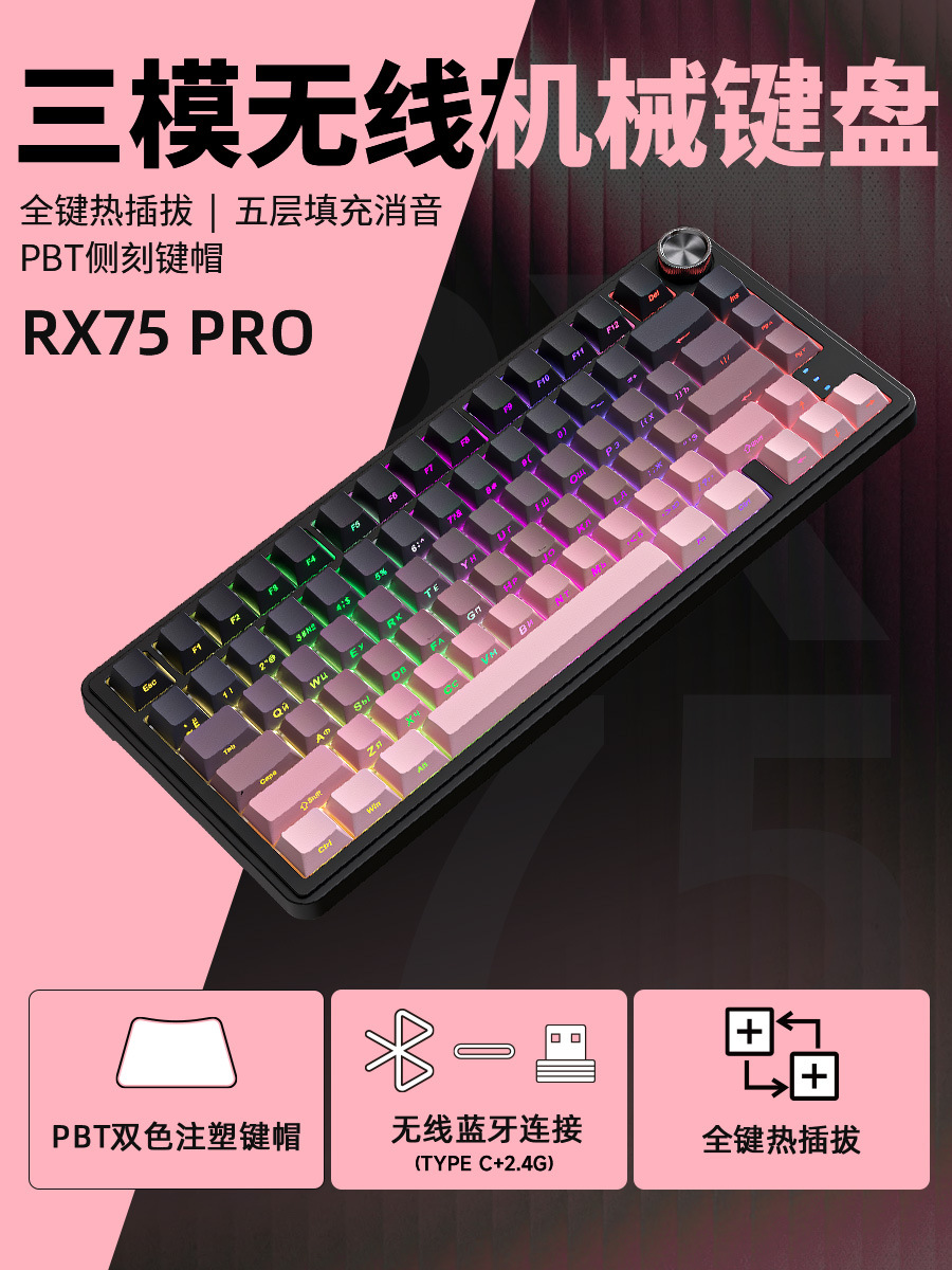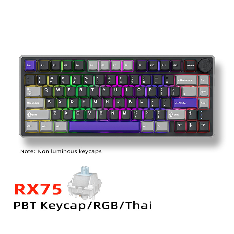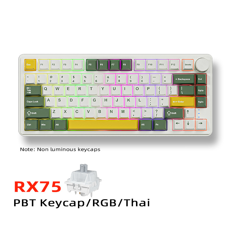 RX75 러시아어 기계식 키보드 무선 블루투스 3모드 맞춤형 PBT 키캡 e스포츠 게임 러시아어 키보드