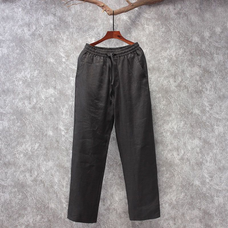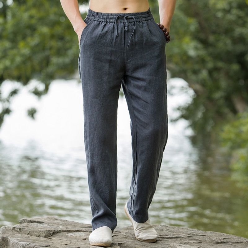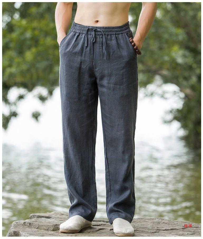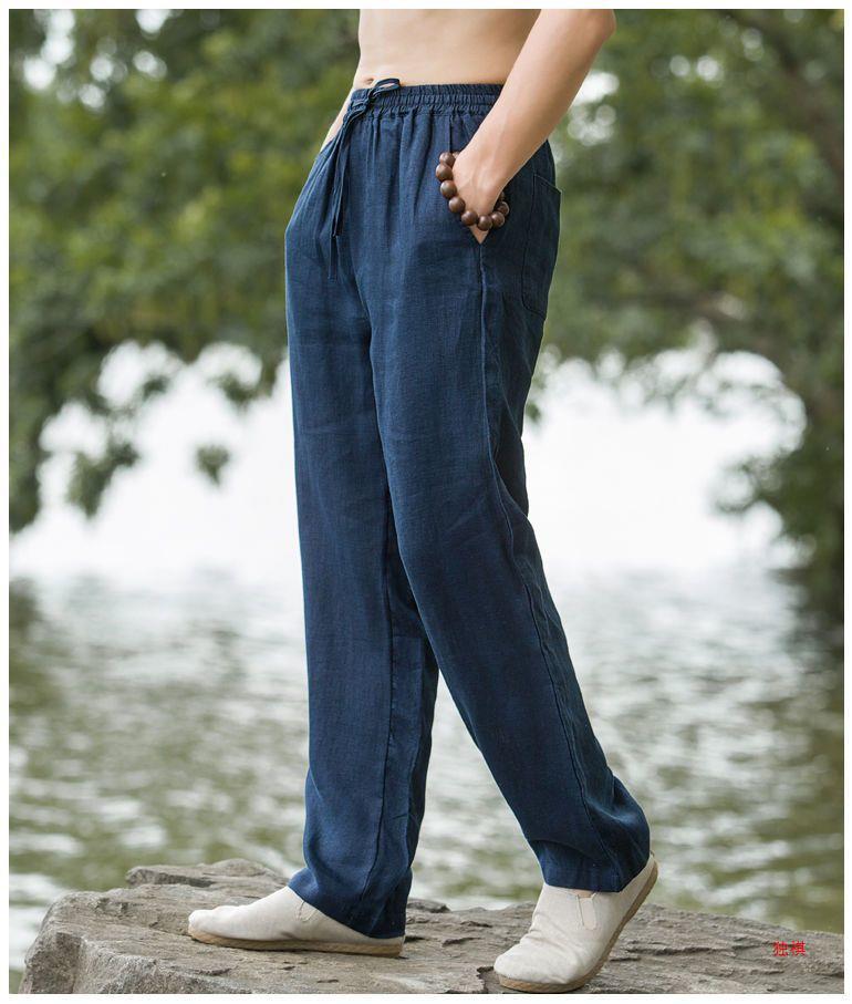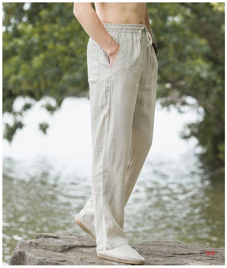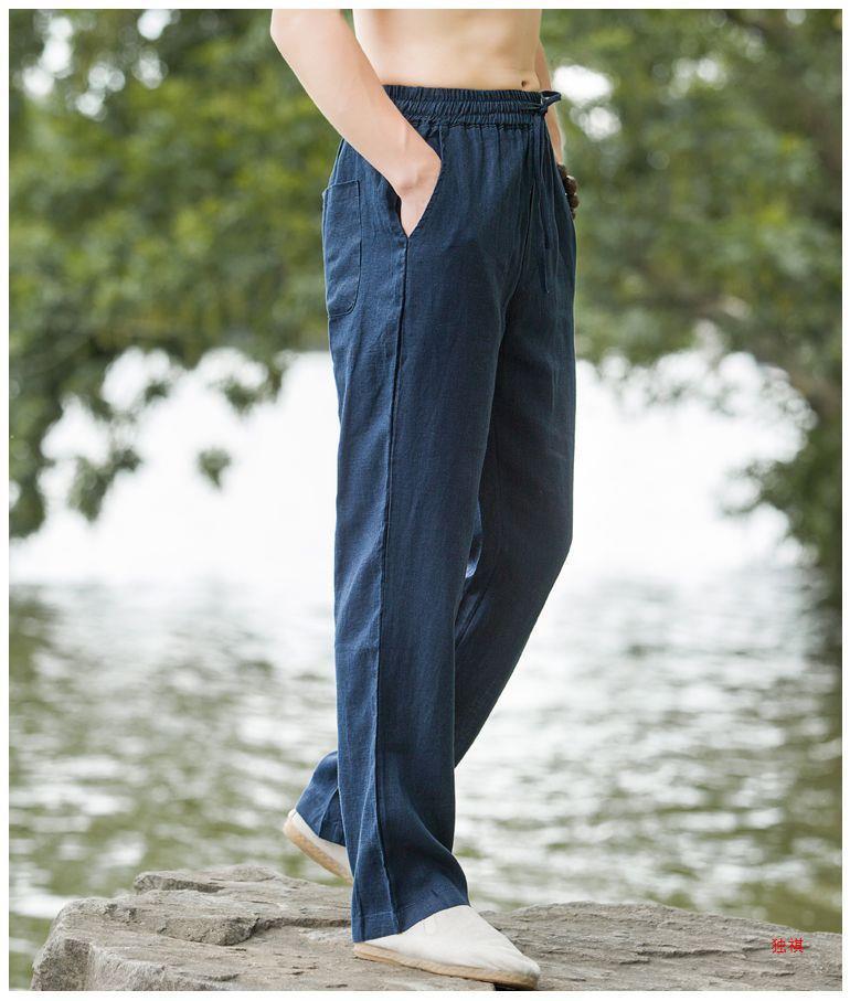 하이 엔드 퓨어 리넨 캐주얼 바지 남성 탕 의류 여름 중국 스타일 남성 느슨한 얇은 스트레이트 코튼 리넨 긴 바지스토어 가기