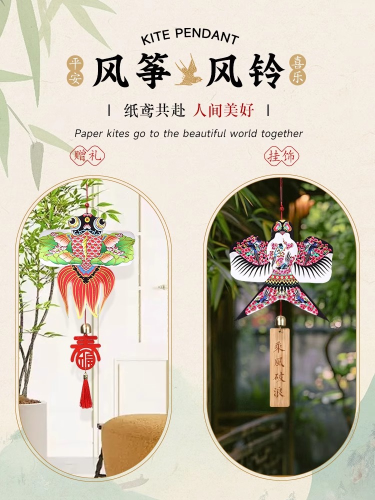 연 바람 벨 수제 DIY 소재 가방 미니 연 작은 연 벨 교수형 장식품 그룹 건물 따뜻한 필드 살롱스토어 가기