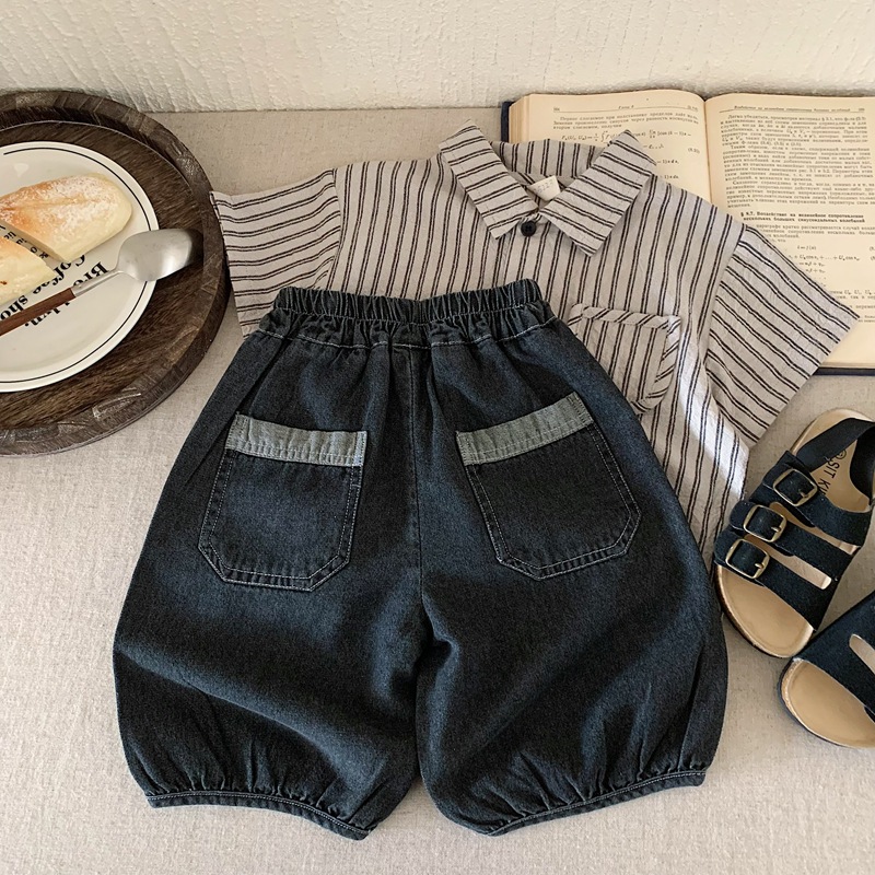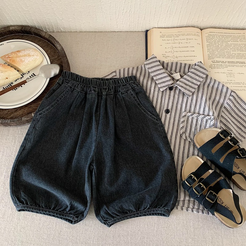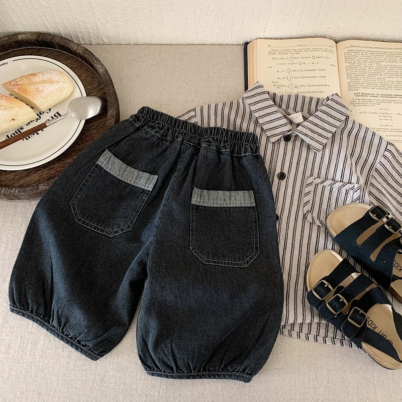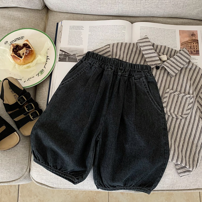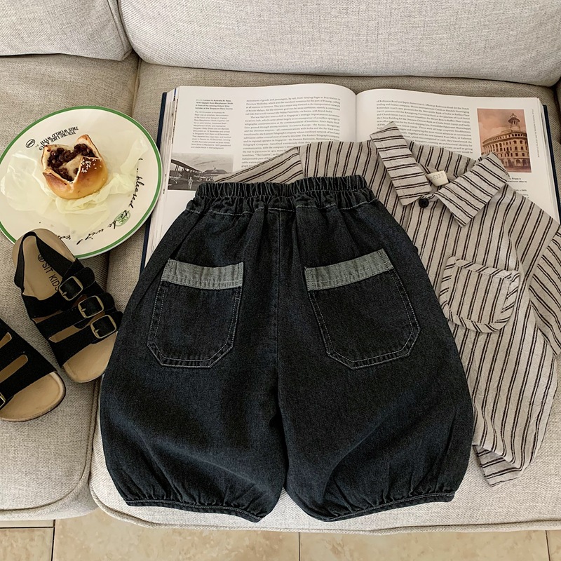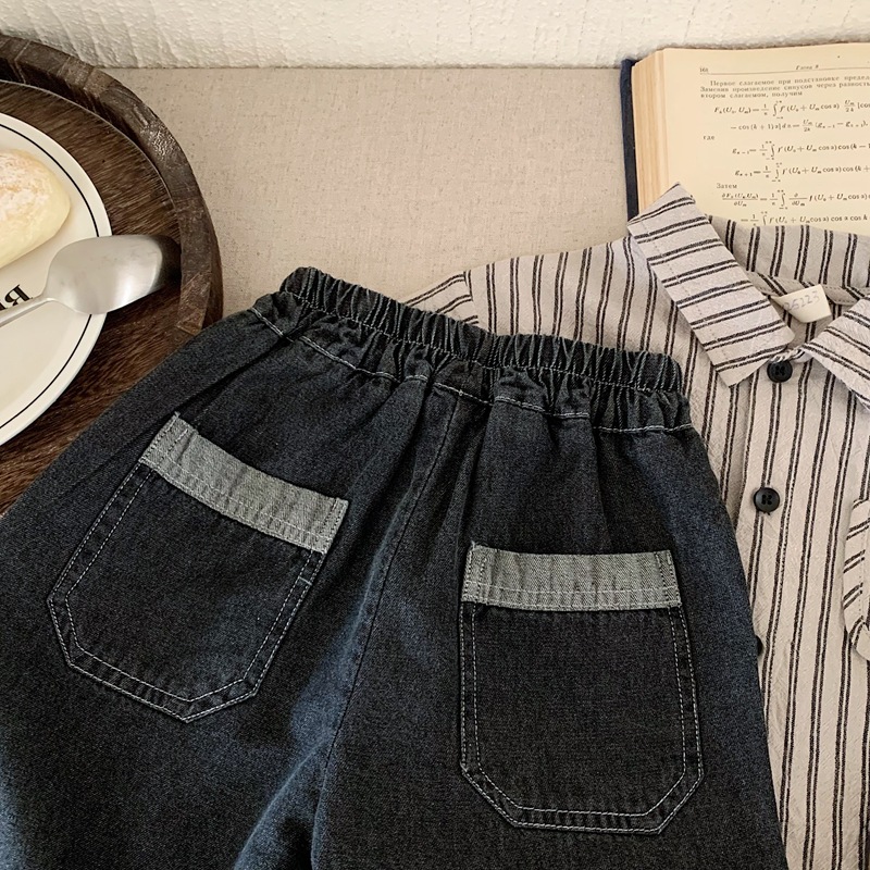 한국 아동복 소년 청바지 카프리 바지 2025 년 여름 새 어린이 잘 생긴 반바지 얇은 검은 바지스토어 가기