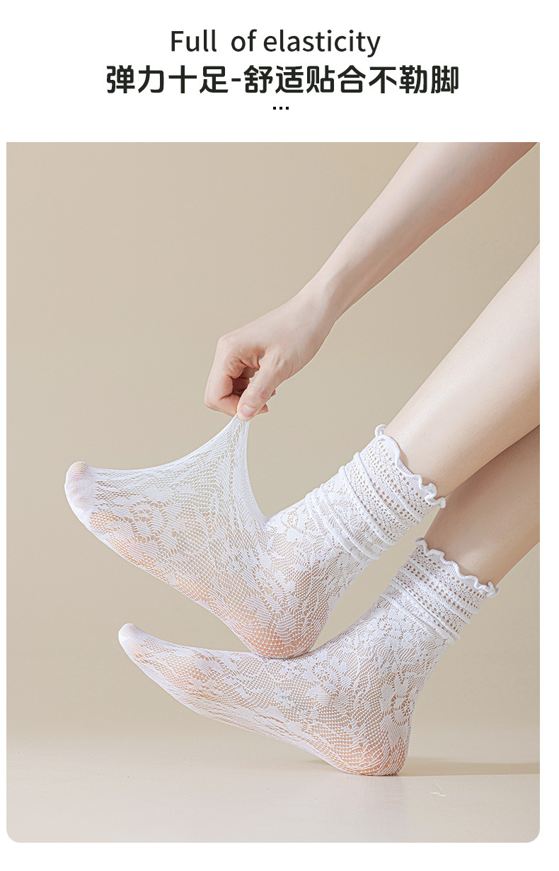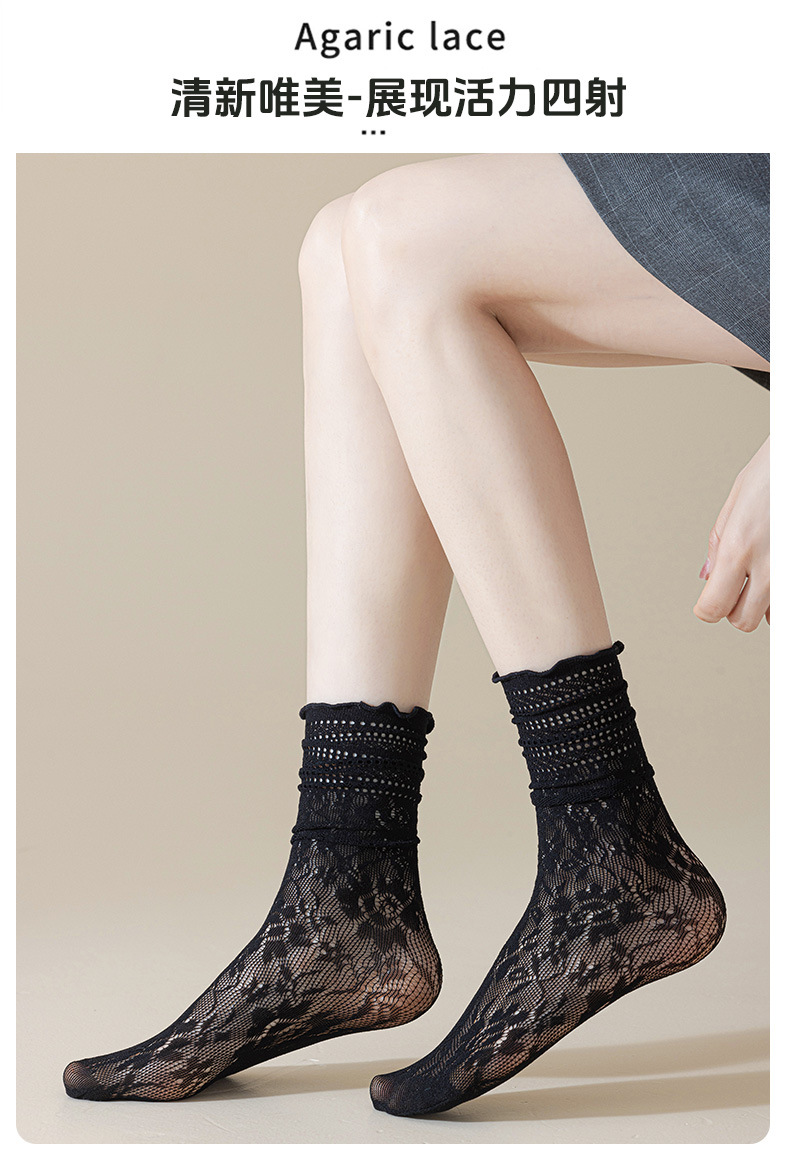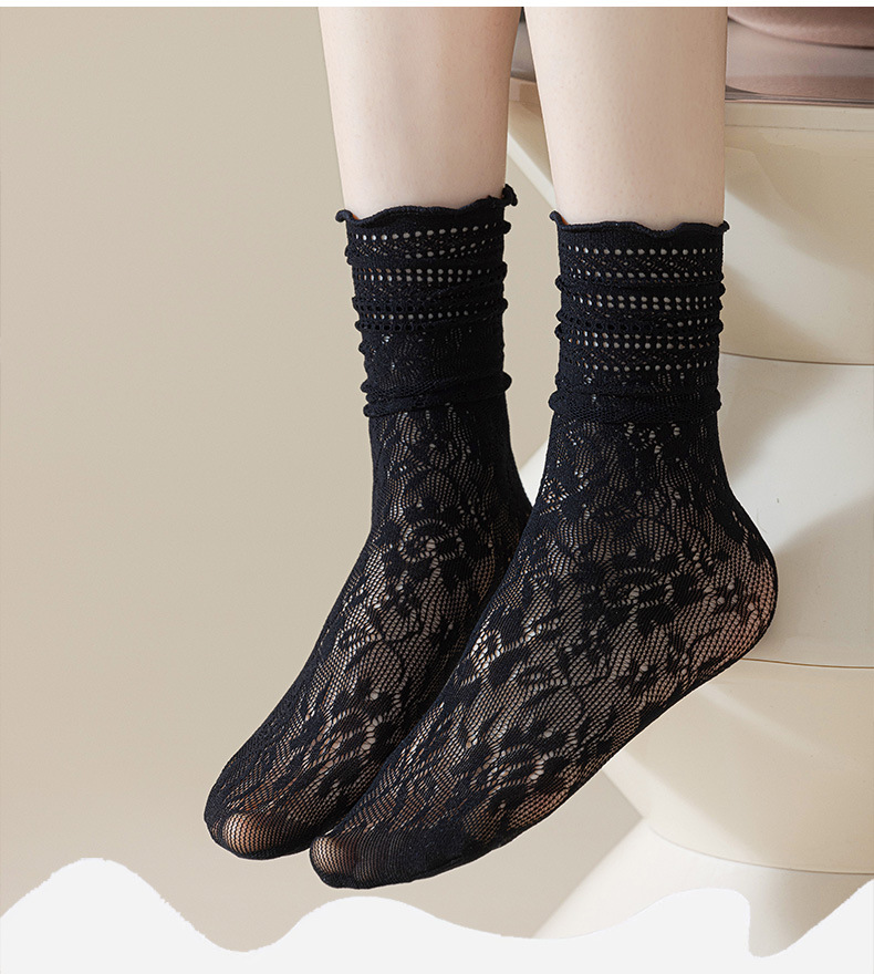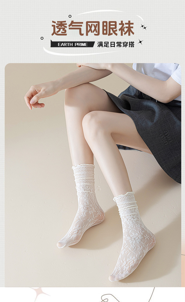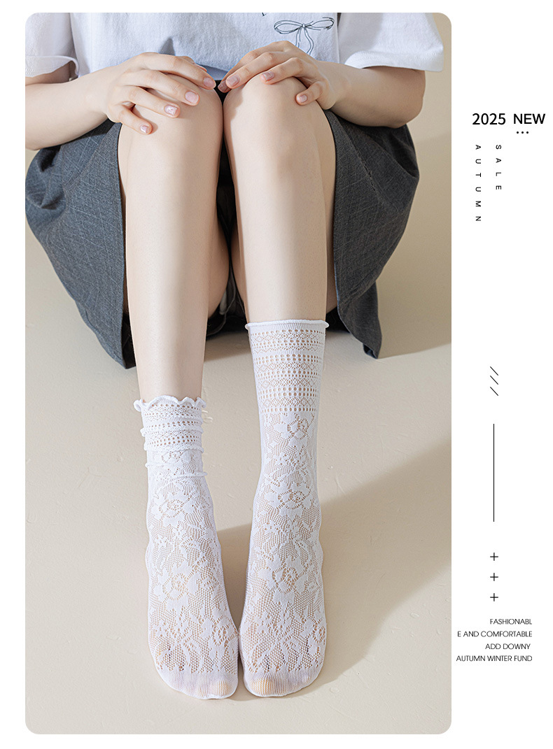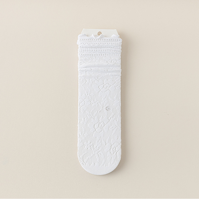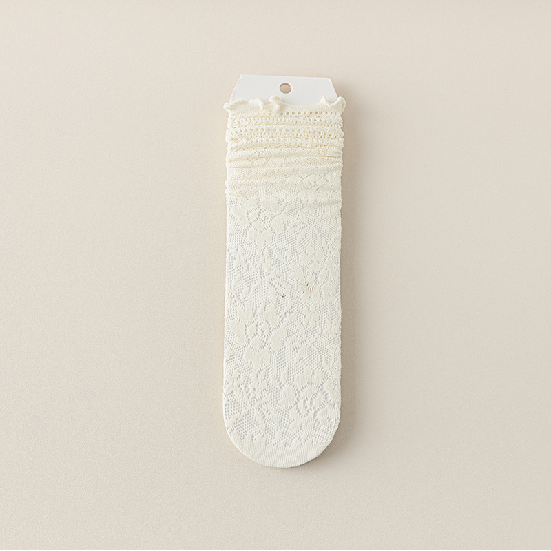 봄 및 여름 어린이를위한 할로우 양말 얇은 솔리드 컬러 미드 튜브 양말 메쉬 통기성 Curled Stacking 양말 유행 올 매치 본리스 양말스토어 가기
