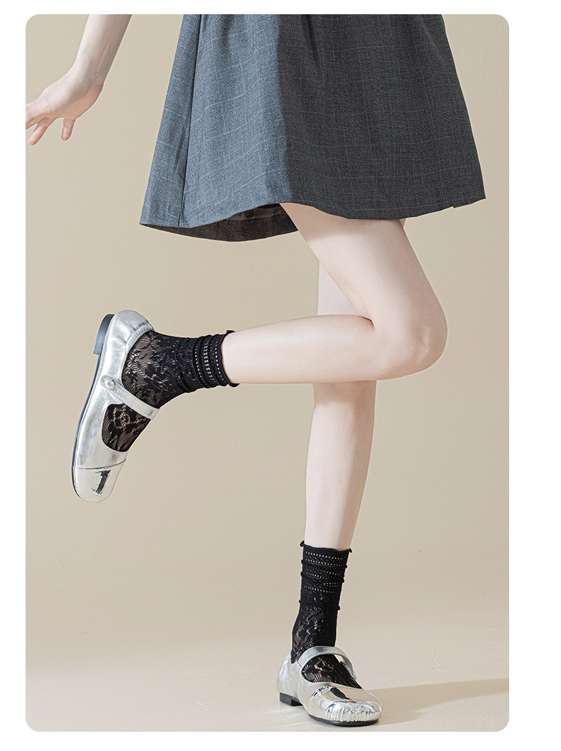 봄 및 여름 어린이를위한 할로우 양말 얇은 솔리드 컬러 미드 튜브 양말 메쉬 통기성 Curled Stacking 양말 유행 올 매치 본리스 양말