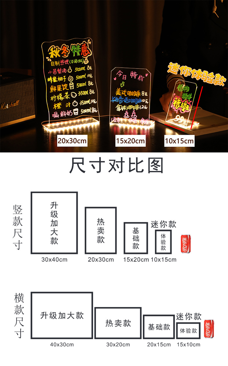 스케치 보드 형광판 손으로 쓴 광고판 실속 발광 디스플레이 표지판 메뉴 테이블 화이트 보드를 걸 수 있습니다스토어 가기
