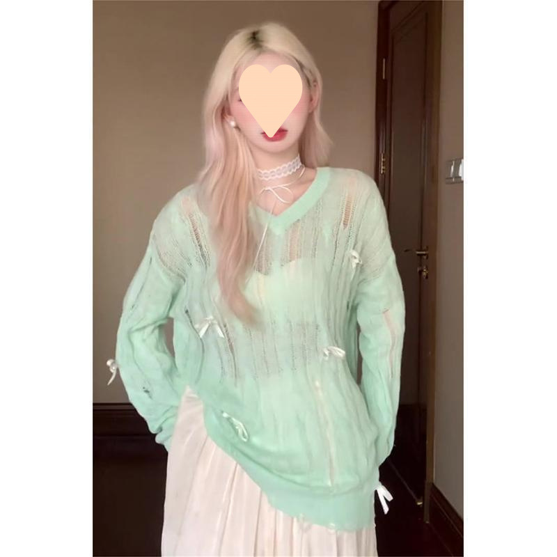 순수한 욕망 스파이스 민트 그린 썬 블라우스 여성의 여름 불규칙한 빈 활 슬림 스웨터 탑스토어 가기