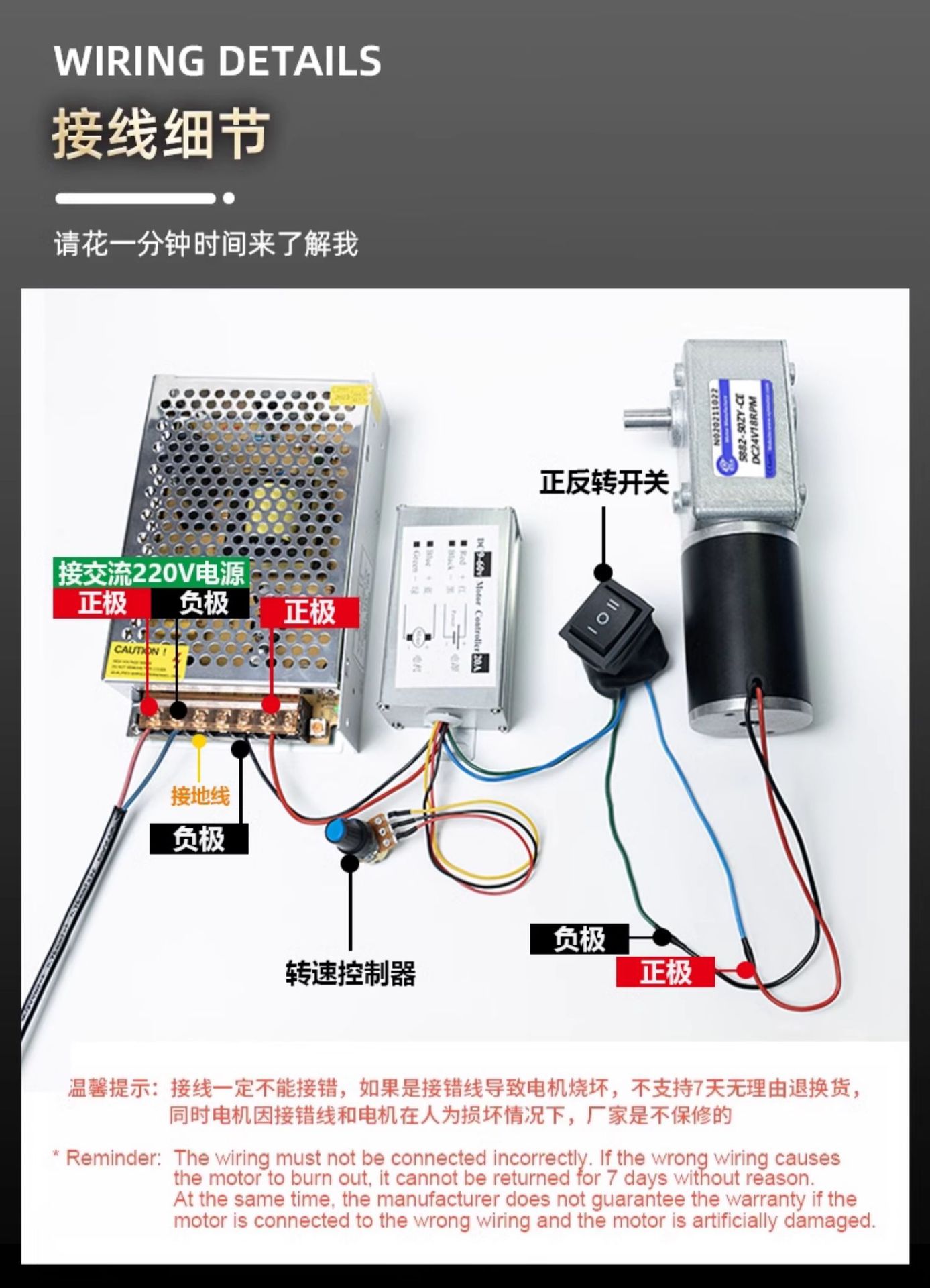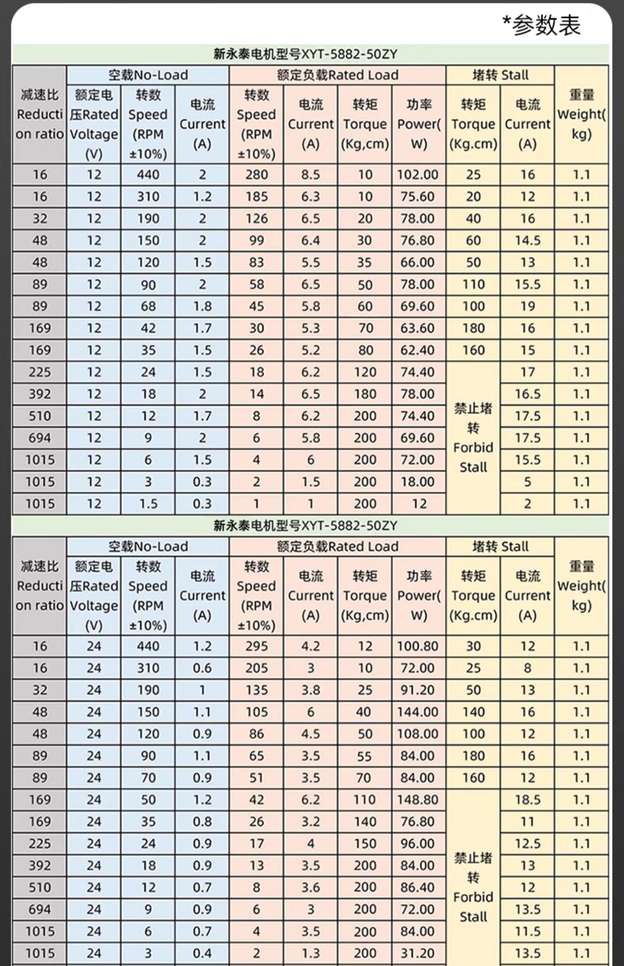 • 이중 출력 샤프트 모터 + 브래킷(전압 및 속도 참고)
